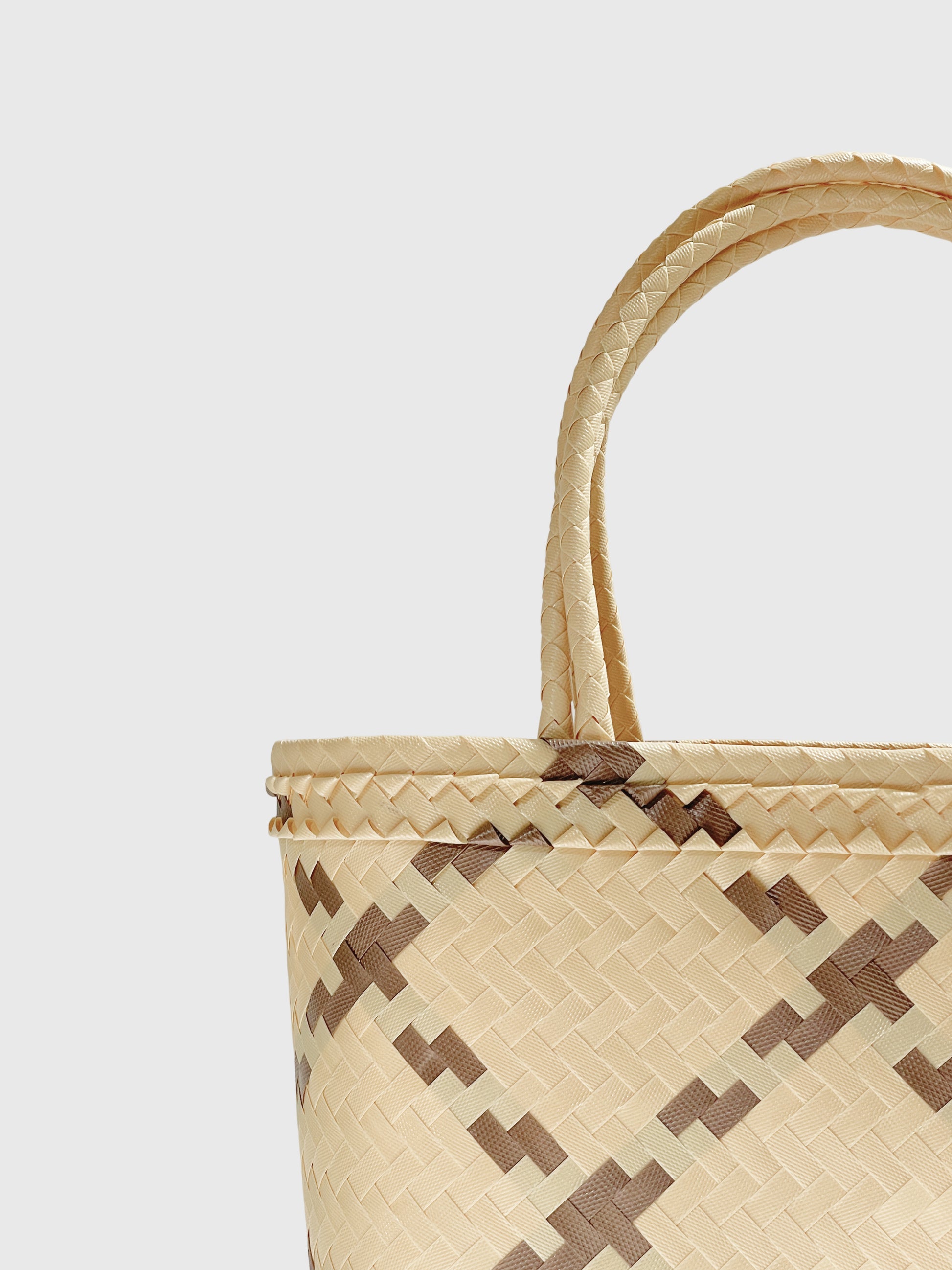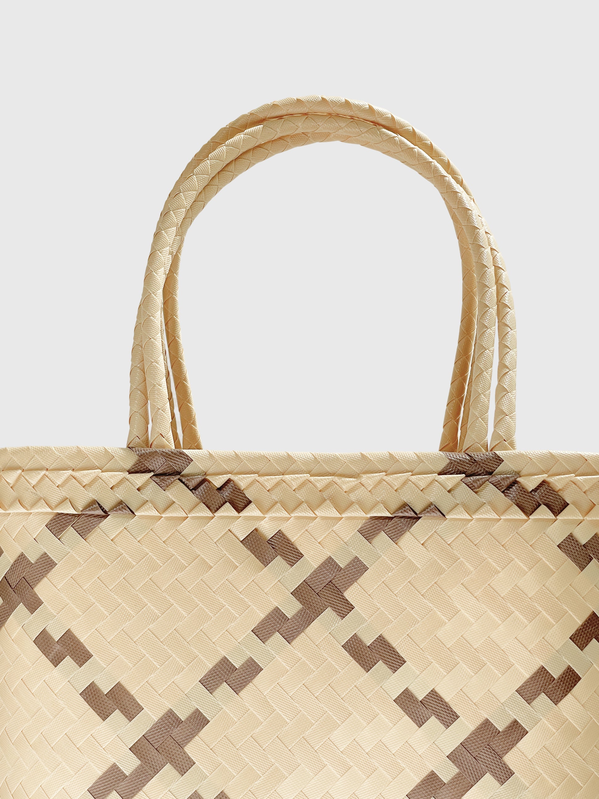 インドネシアの女性の職人さんが一つひとつ丁寧に編み上げた、ハンドメイドのバッグです。手作業ならではのぬくもりと味わいが魅力で、サイズには若干の個体差がございます。