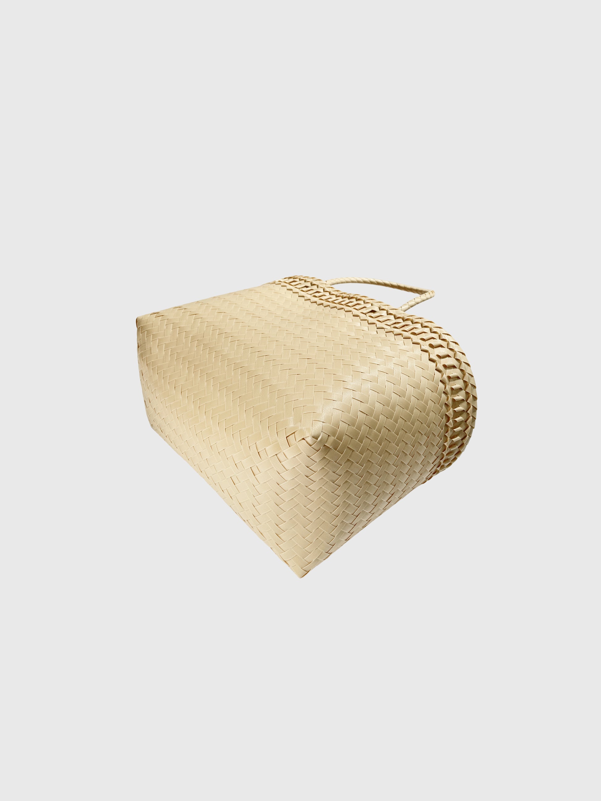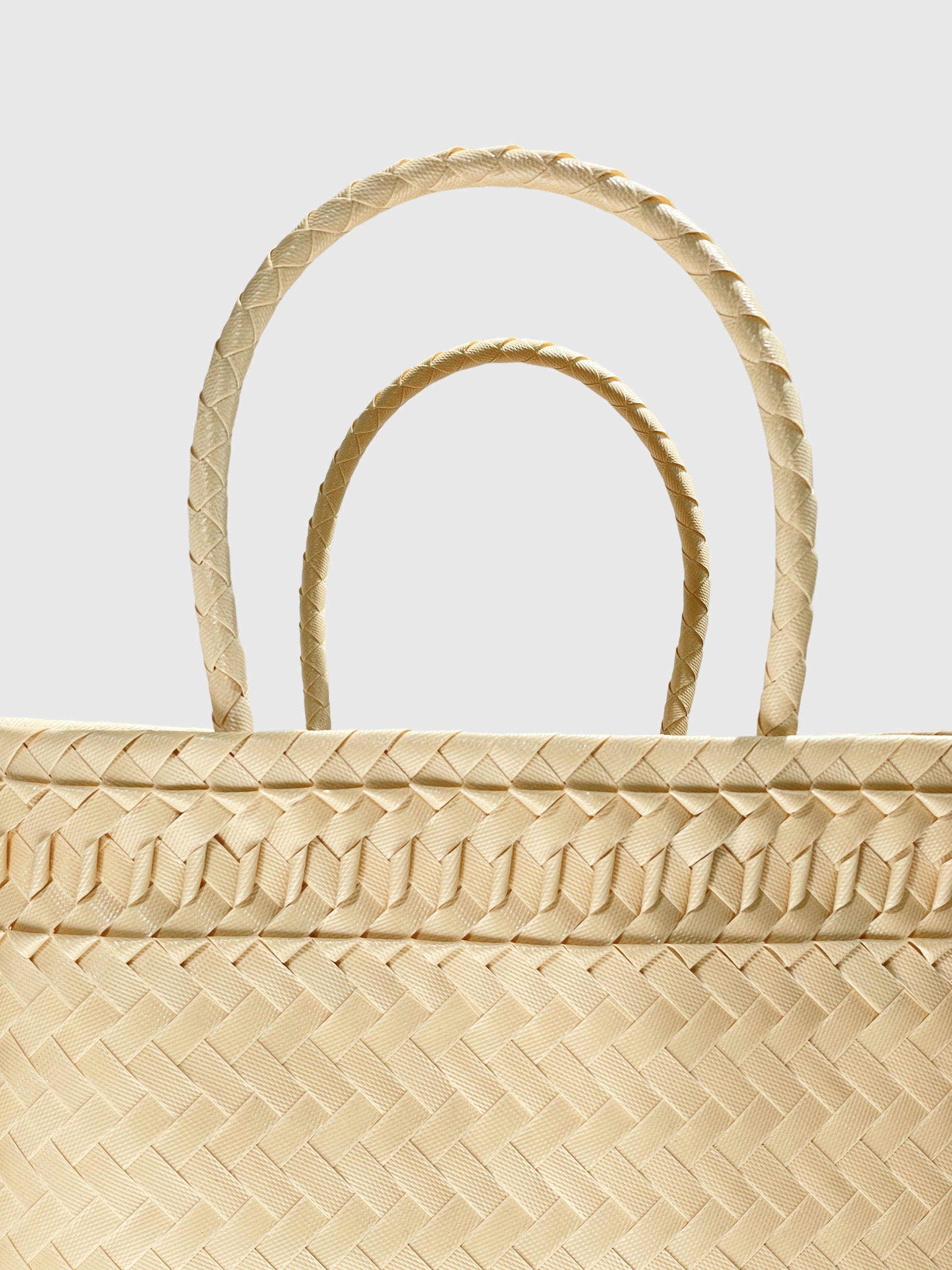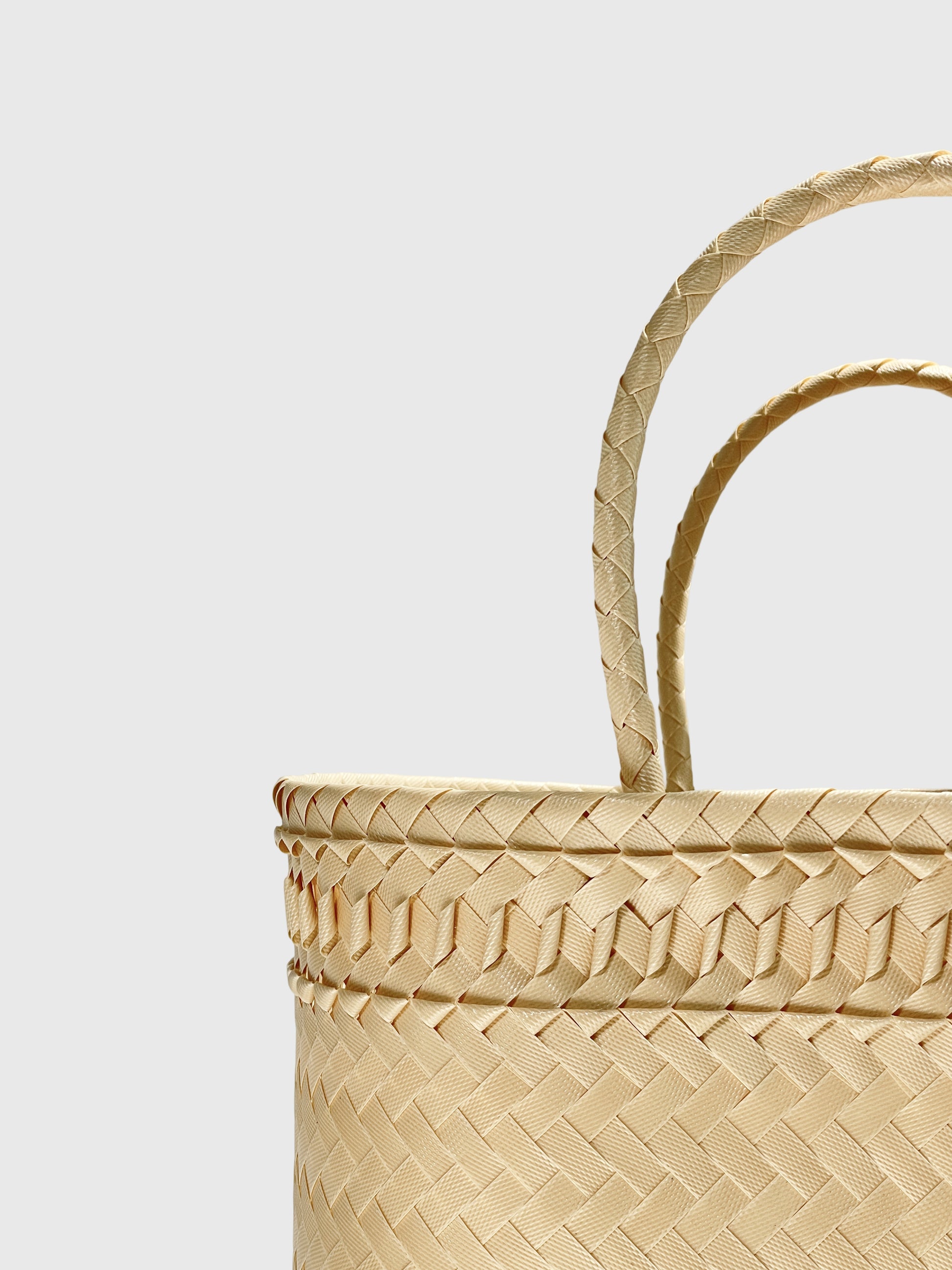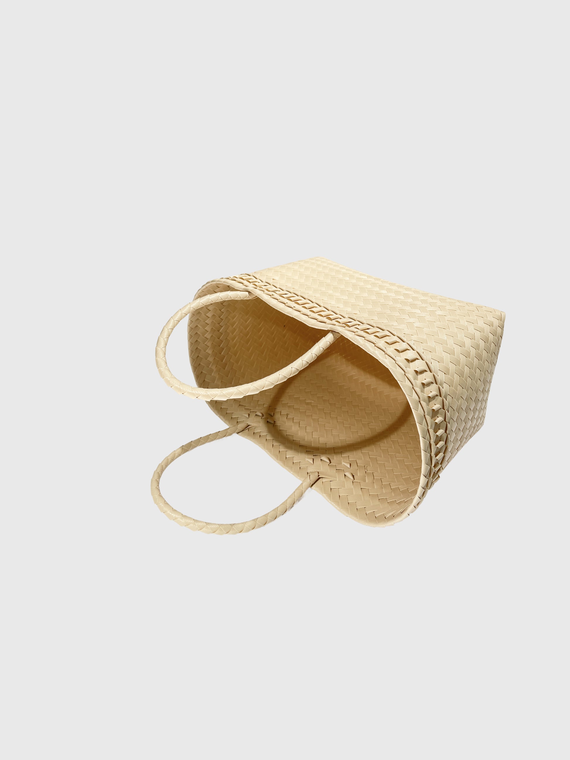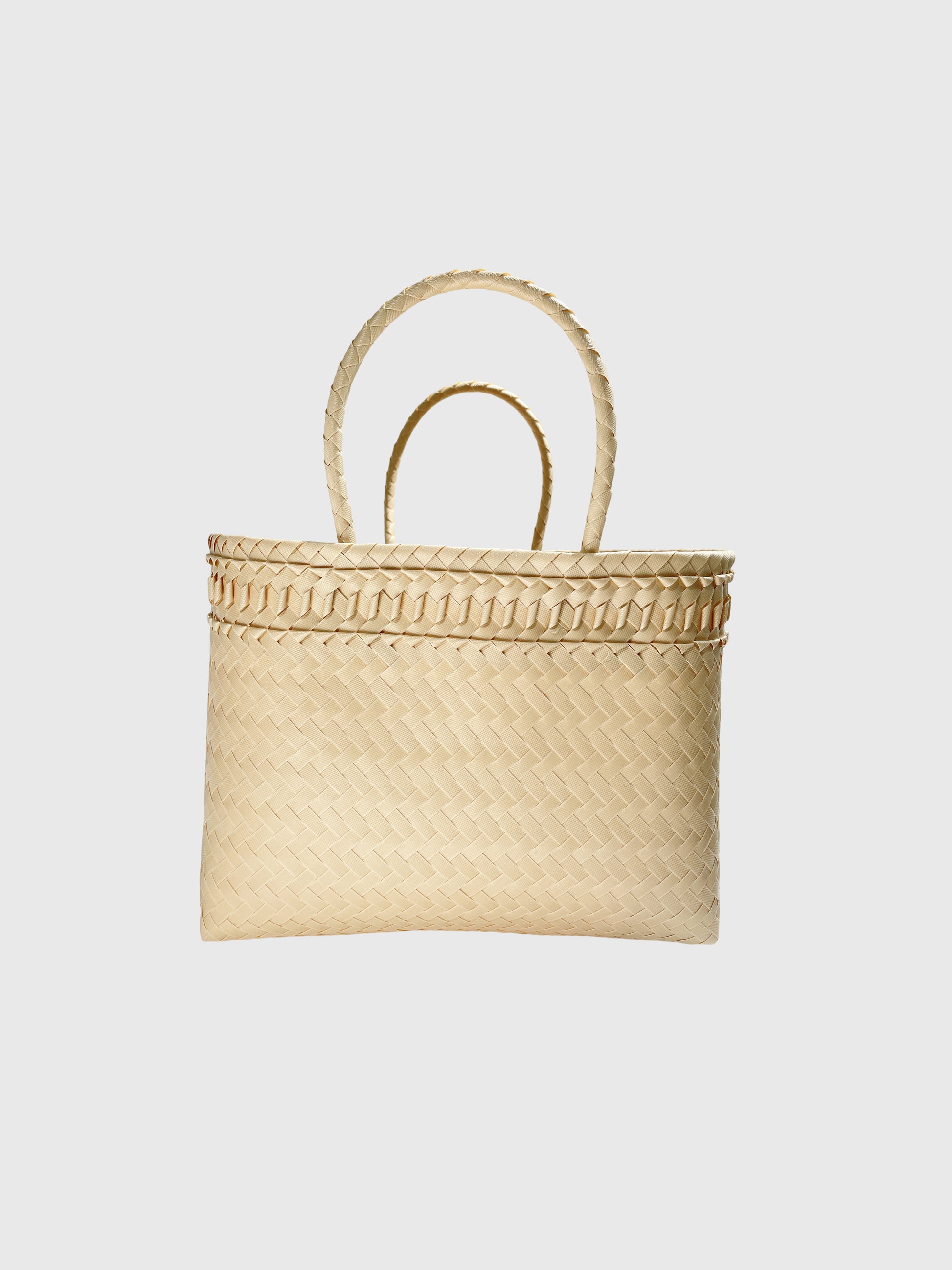 インドネシアの女性の職人さんが一つひとつ丁寧に編み上げた、ハンドメイドのバッグです。手作業ならではのぬくもりと味わいが魅力で、サイズには若干の個体差がございます。