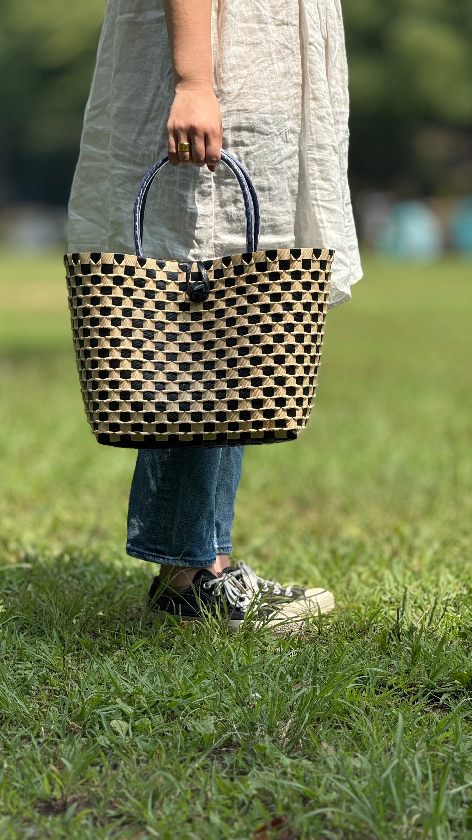 このバッグは、インドネシアの女性たちがリサイクル素材を使い、一つひとつ手で編んでいます。地球にやさしく、そして作り手の想いが感じられるアイテムを、ぜひあなたの毎日に取り入れてみませんか?
