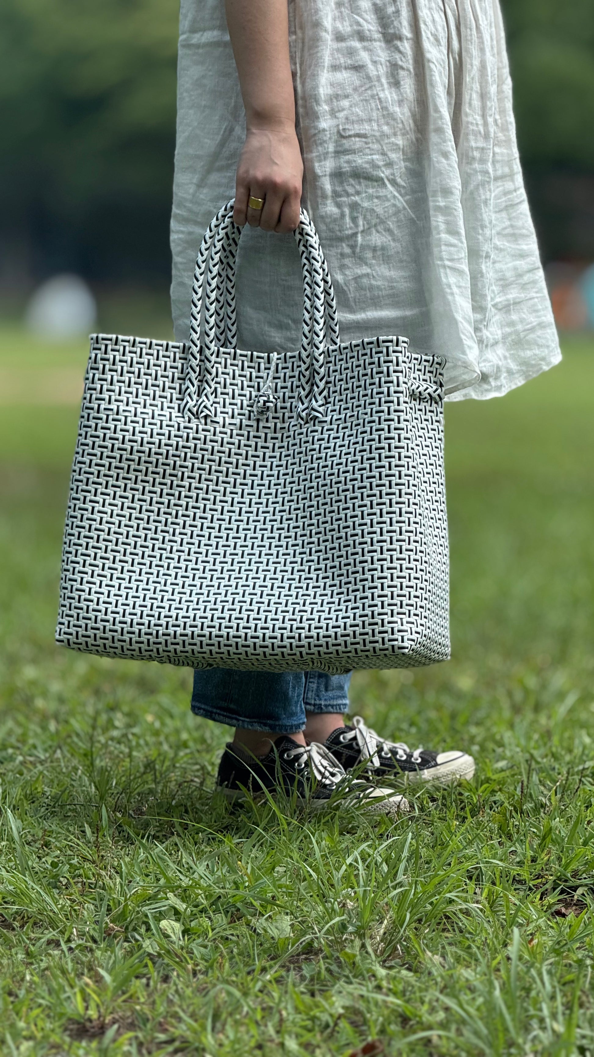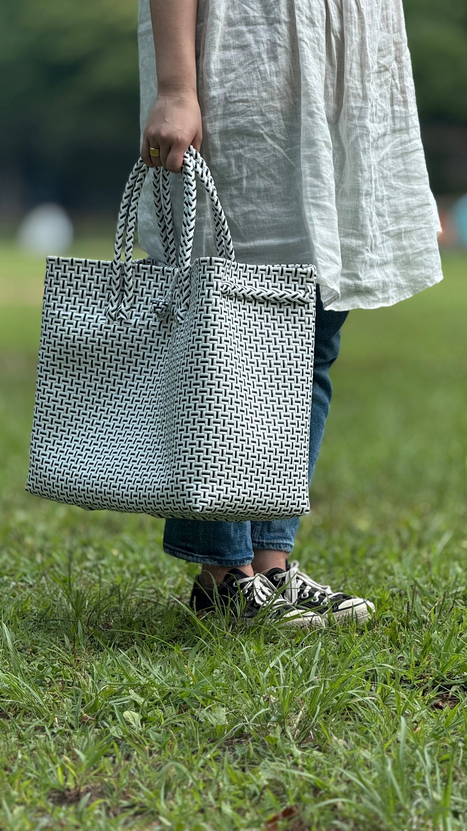 このバッグは、インドネシアの女性たちがリサイクル素材を使い、一つひとつ手で編んでいます。地球にやさしく、そして作り手の想いが感じられるアイテムを、ぜひあなたの毎日に取り入れてみませんか?