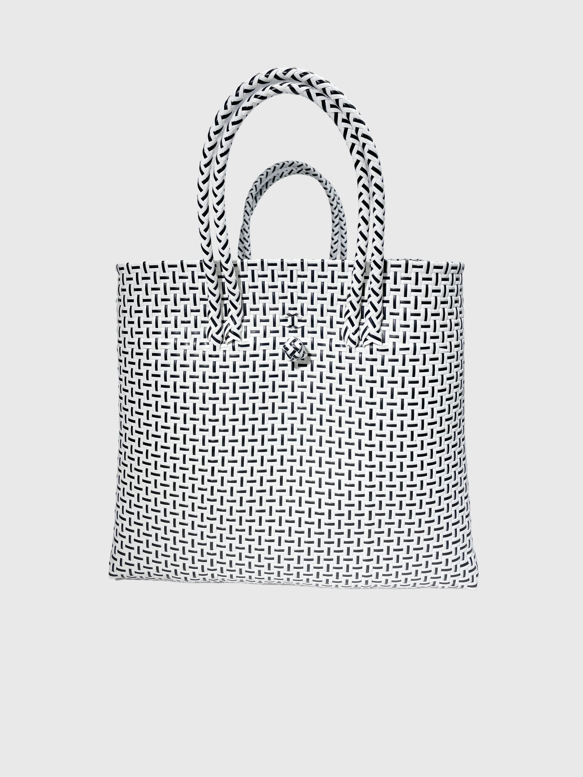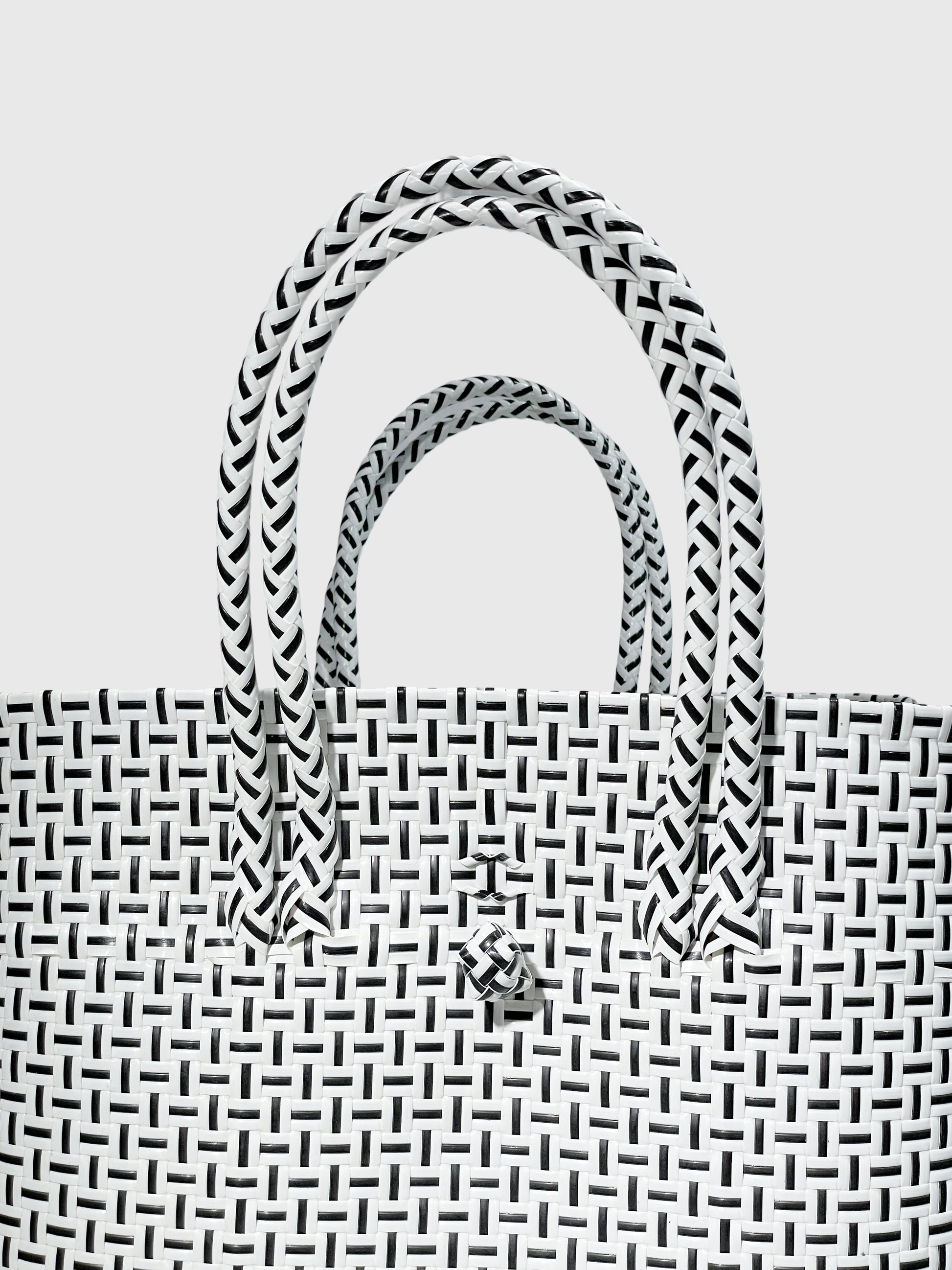 シックなホワイト×ブラックのモノトーンデザイン。上品でスタイリッシュな雰囲気を持ちながら、日常使いにも取り入れやすい落ち着いたカラーリングです。コーディネートを選ばず、季節を問わずお使いいただけます。