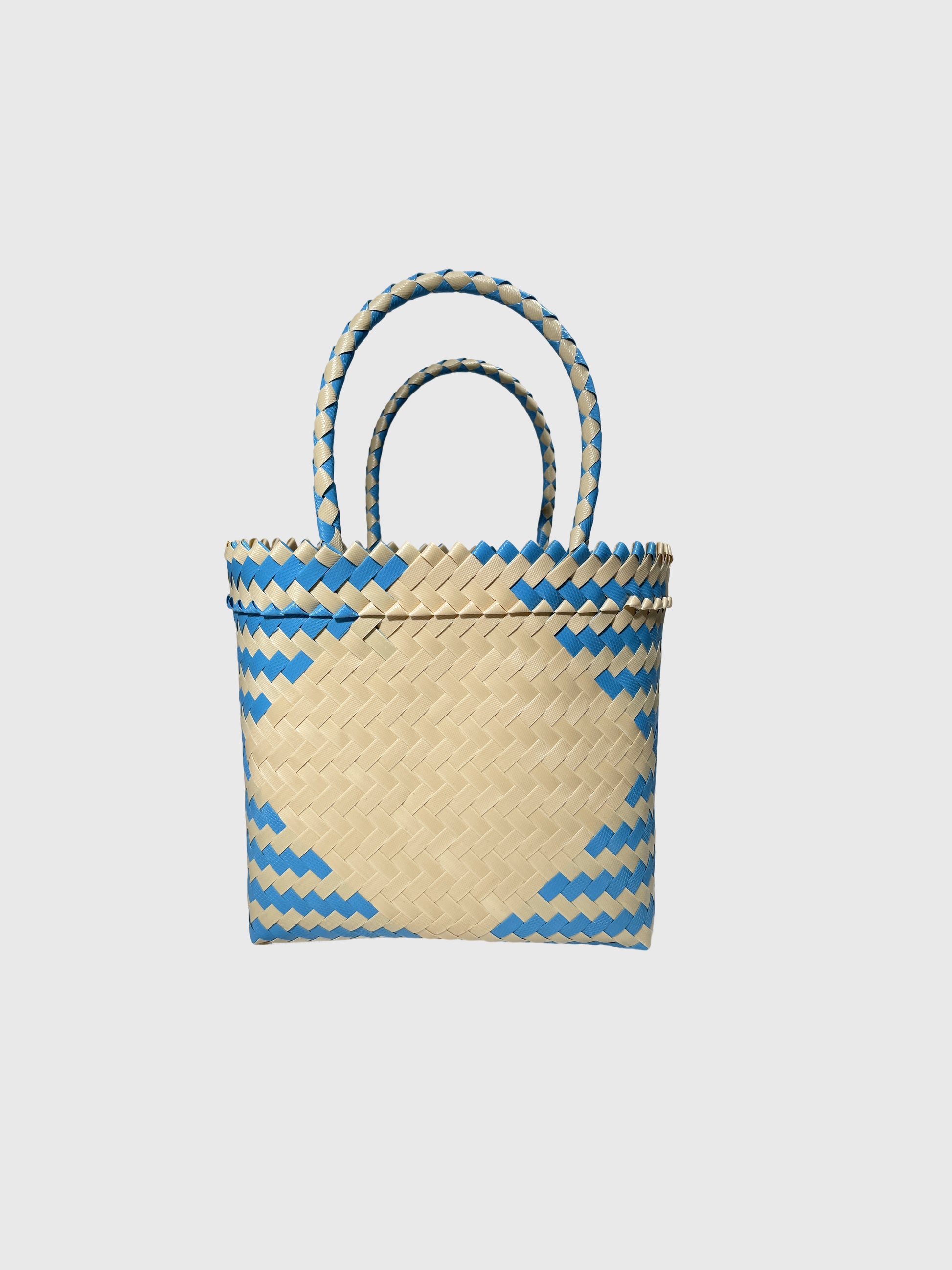 ブルー ベージュ トライアングル ルリック ミニ ハンドバッグ