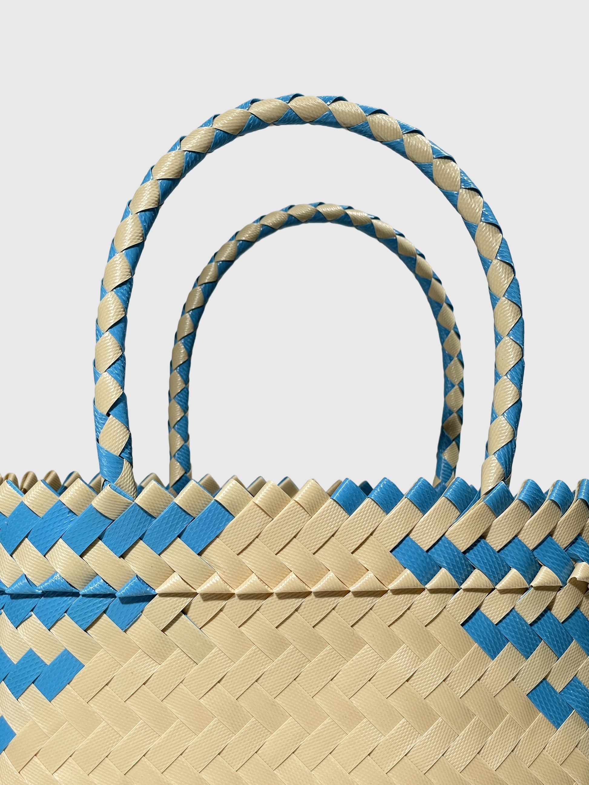 ナチュラルなベージュをベースに、爽やかなブルーを合わせたデザイン。清涼感があり、持つだけで軽やかな印象に。春夏のコーディネートにぴったりで、カジュアルにも上品にも合わせやすい配色です。