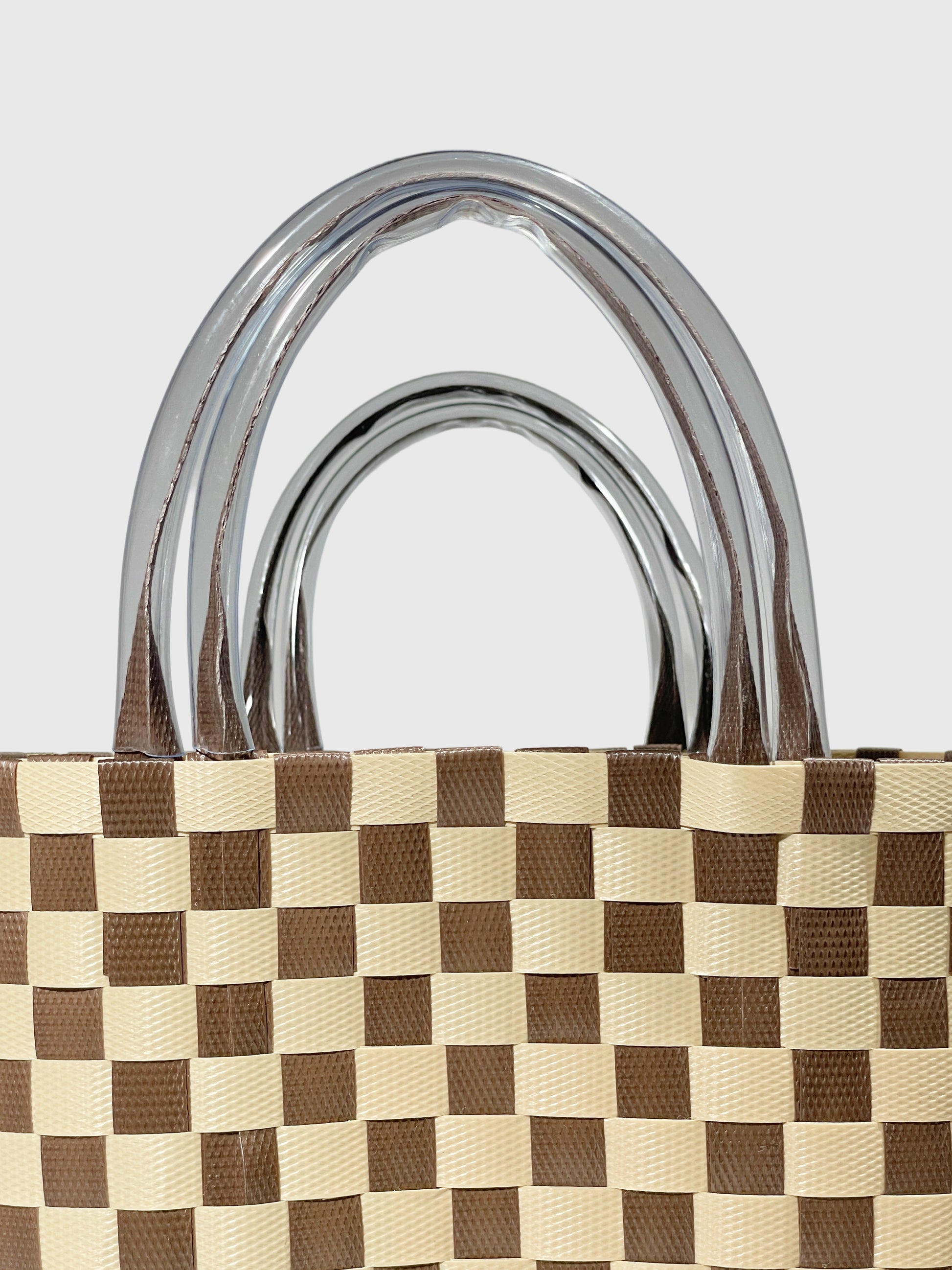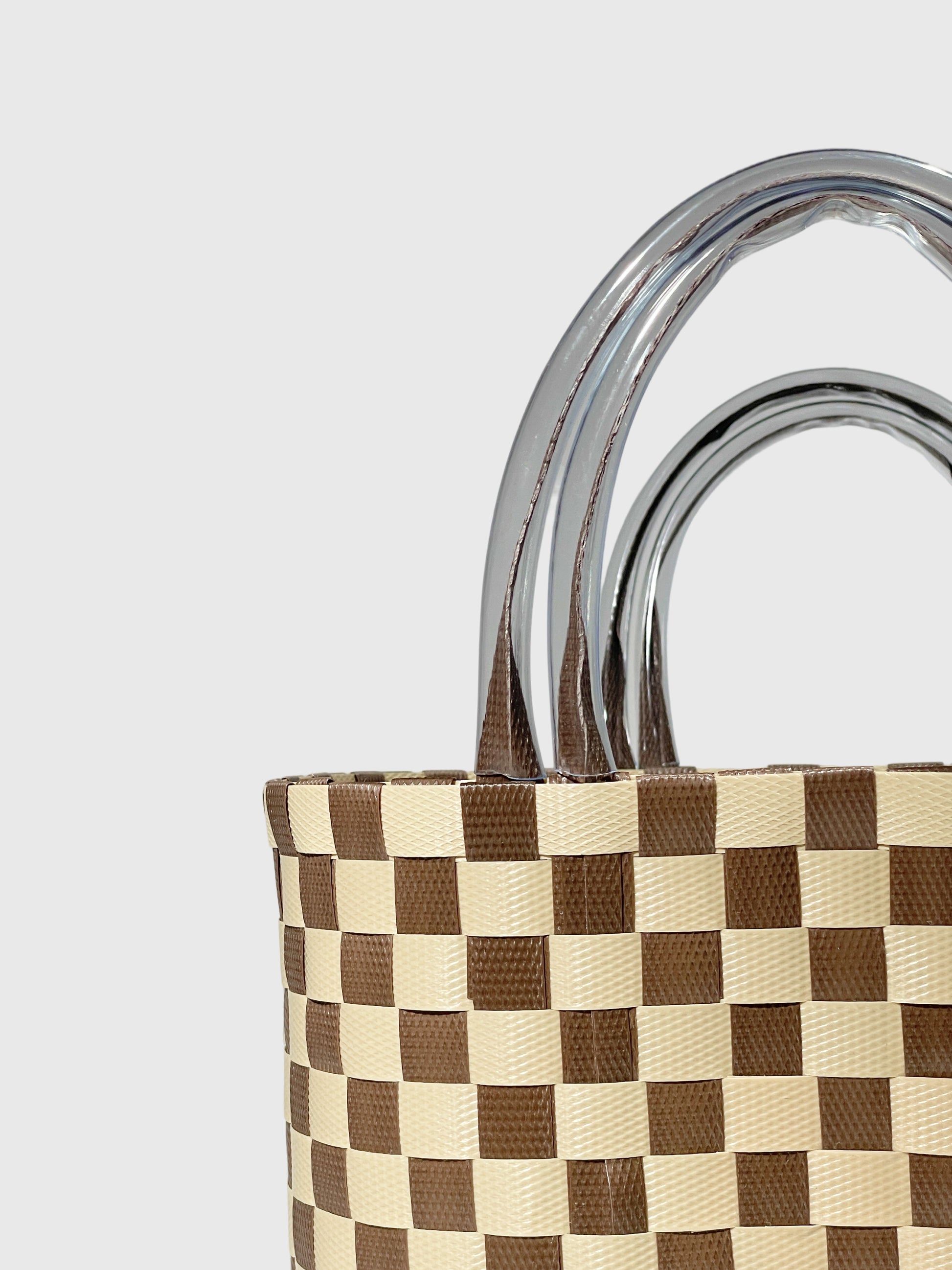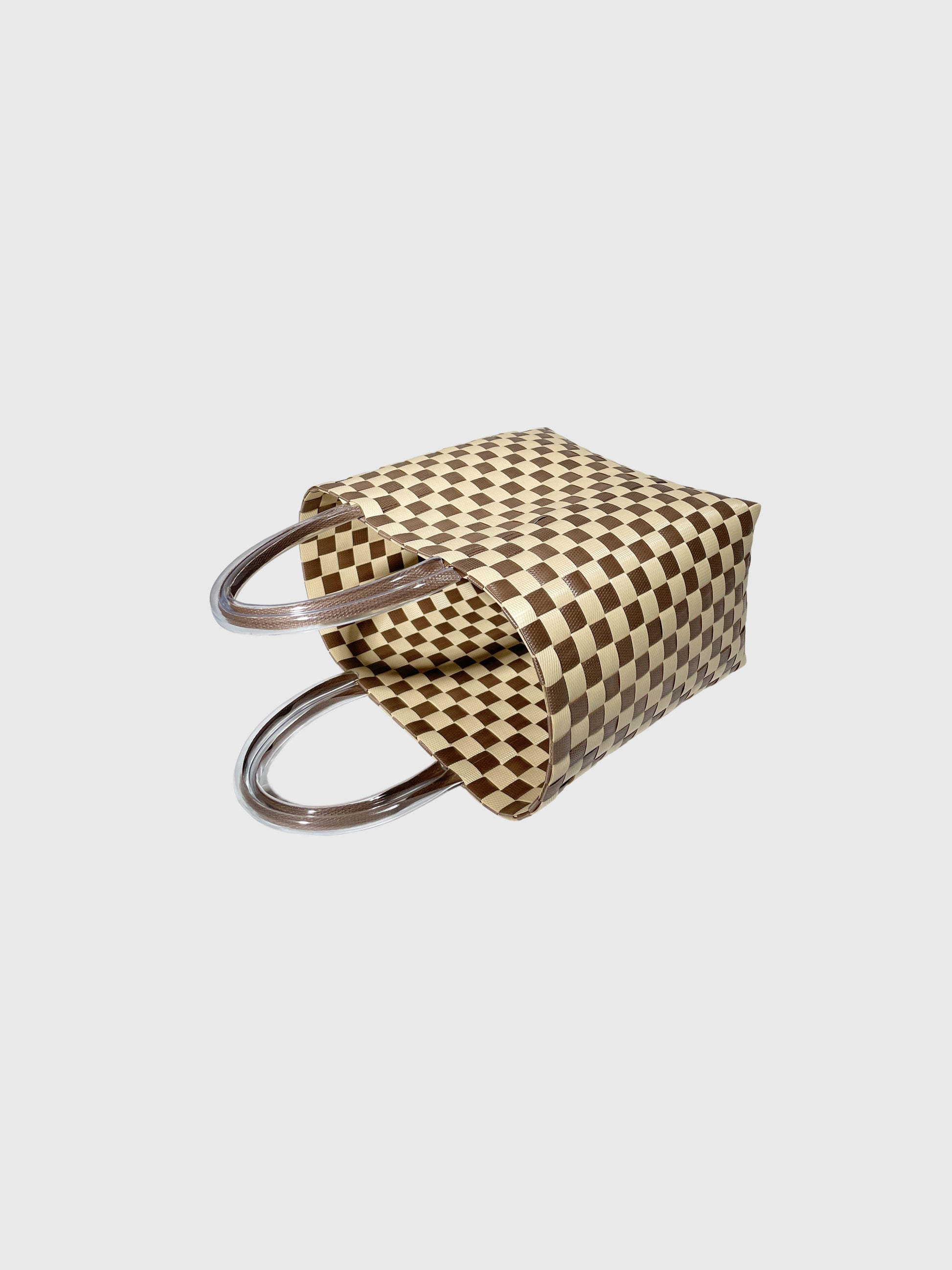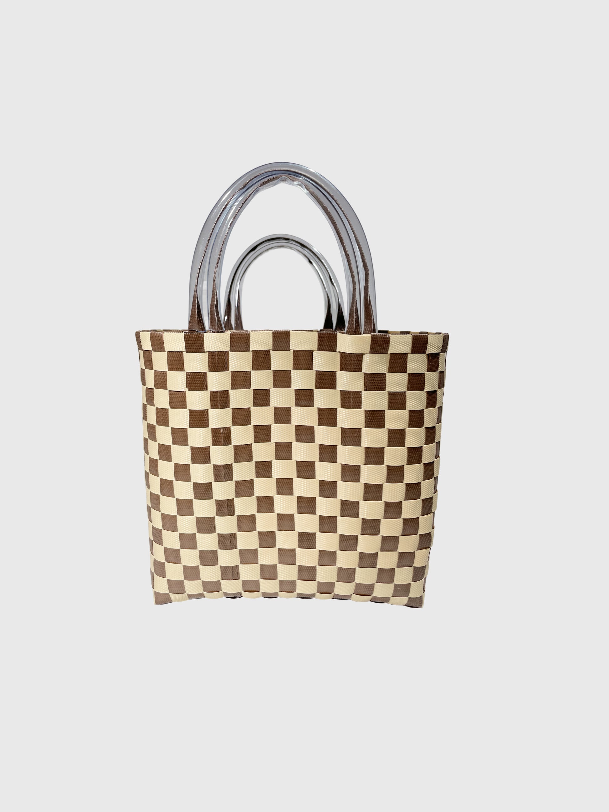 ブラウン ベージュ チェック エンボス ハンドバッグ