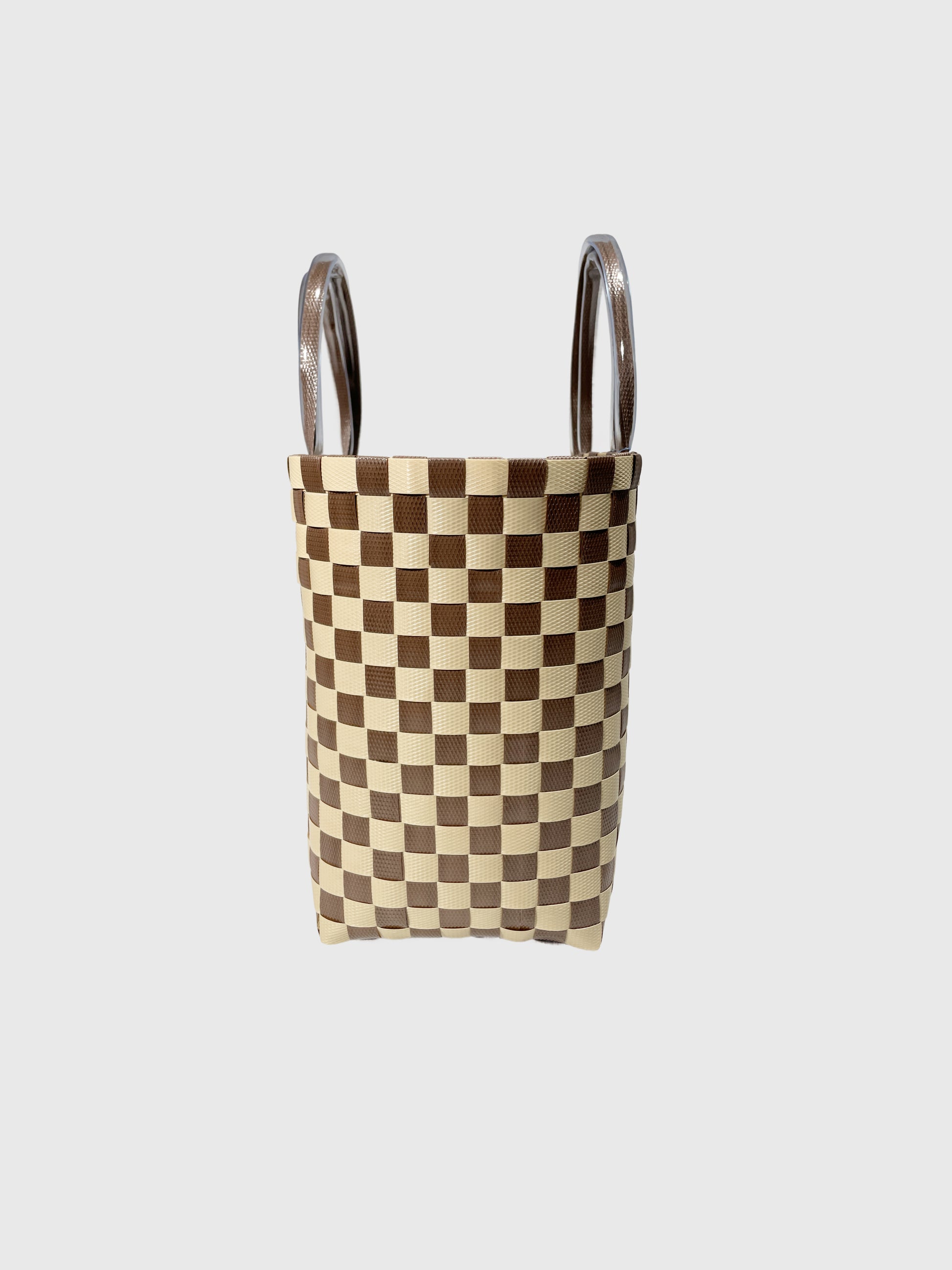 ブラウンとベージュの落ち着いた市松模様が、大人の上品さを感じさせるデザイン。ナチュラルで柔らかな印象のベージュに、深みのあるブラウンが組み合わさることで、コーディネートをさりげなく格上げしてくれます。シンプルからカジュアル、シックな装いまで幅広く合わせやすいカラーです。