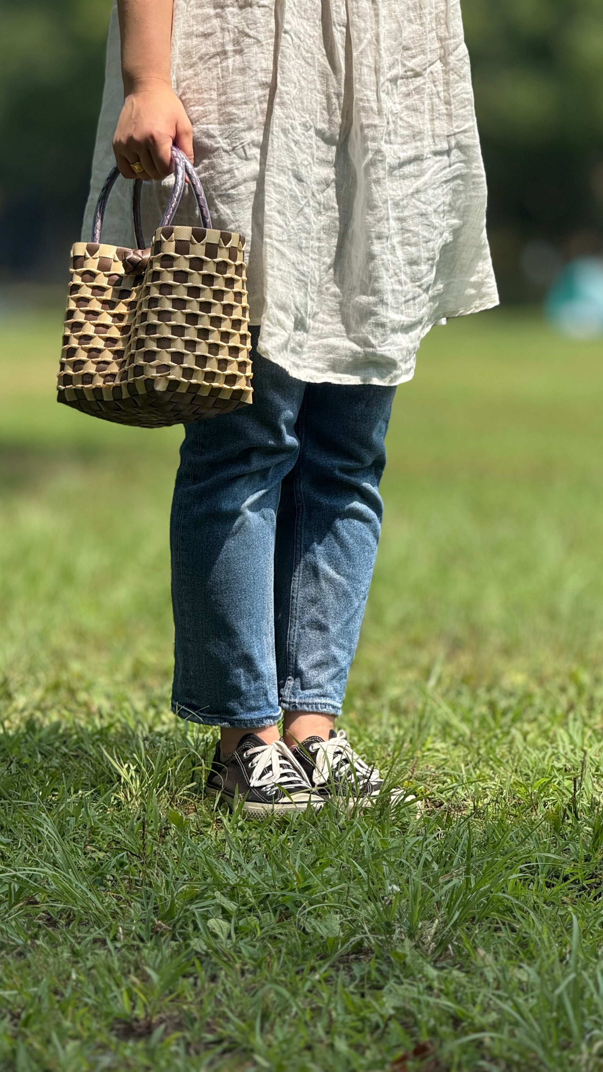 このバッグは、インドネシアの女性たちがリサイクル素材を使い、一つひとつ手で編んでいます。地球にやさしく、そして作り手の想いが感じられるアイテムを、ぜひあなたの毎日に取り入れてみませんか?
