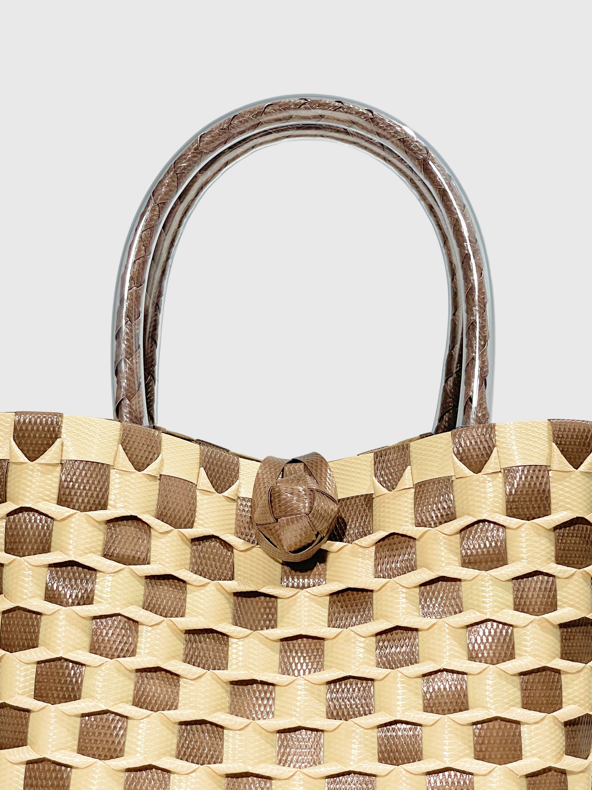 インドネシアの女性の職人さんが一つひとつ丁寧に編み上げた、ハンドメイドのバッグです。手作業ならではのぬくもりと味わいが魅力で、サイズには若干の個体差がございます。
