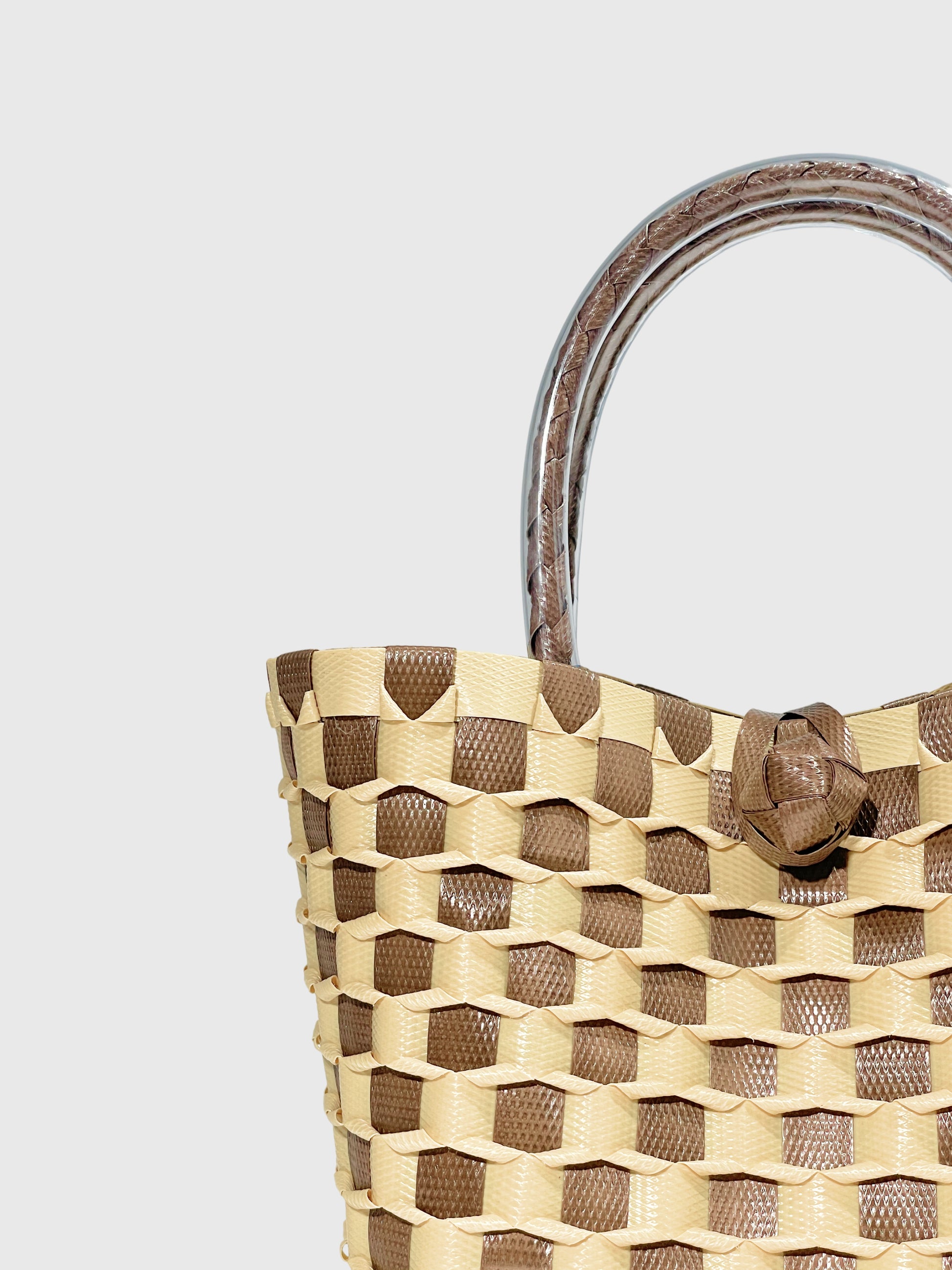 ブラウン ベージュ エンボス ミニ ハンドバッグ