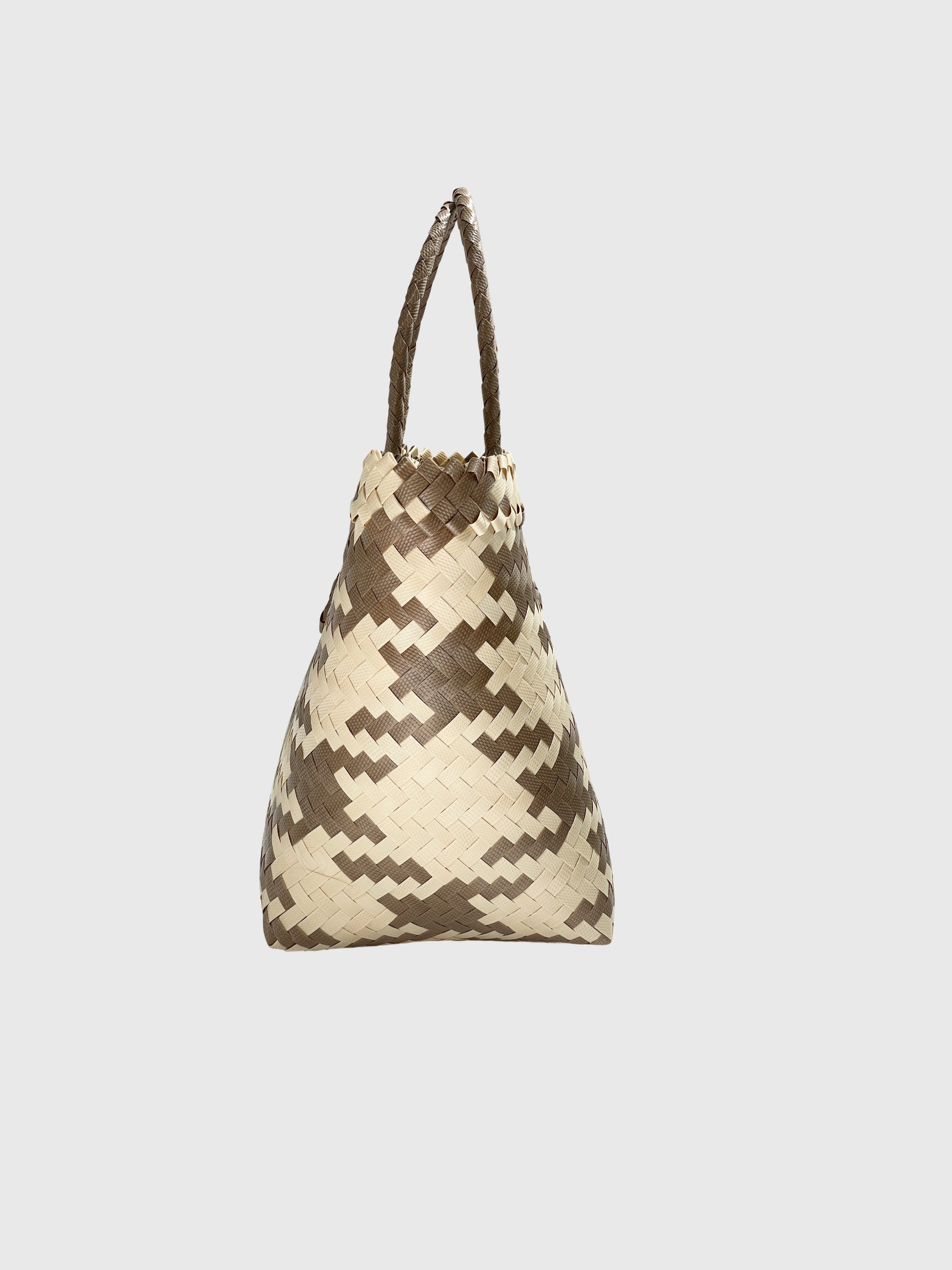 落ち着いたブラウンと、やさしい印象のベージュを組み合わせたジグザグ模様のデザイン。ナチュラルで洗練された配色は、どんな装いにもなじみやすく、世代を問わず使いやすいカラーです。季節を選ばない、毎日に寄り添うシンプルな魅力が詰まっています。