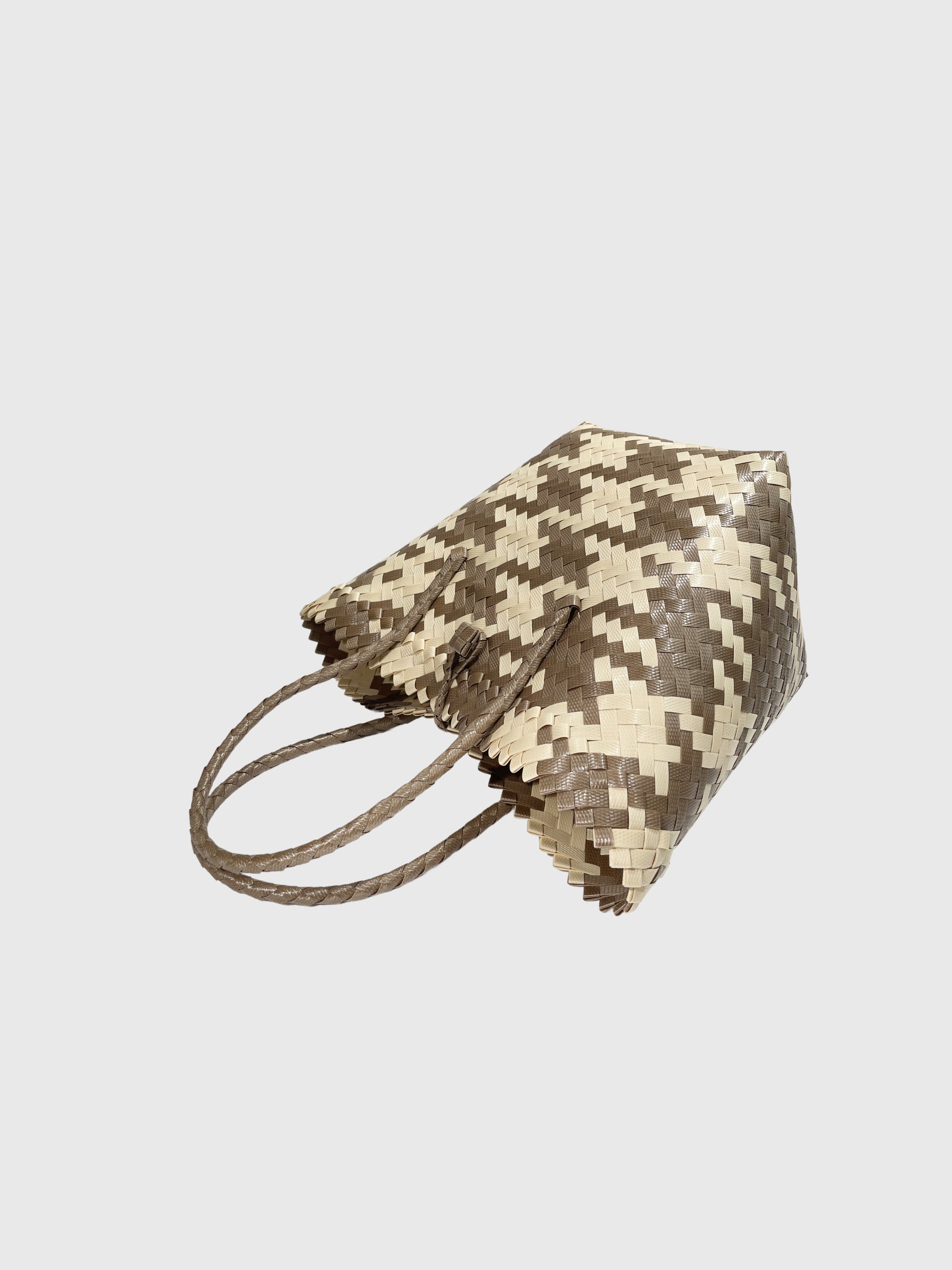 ブラウン ベージュ 千鳥柄 エンボス ハンドバッグ