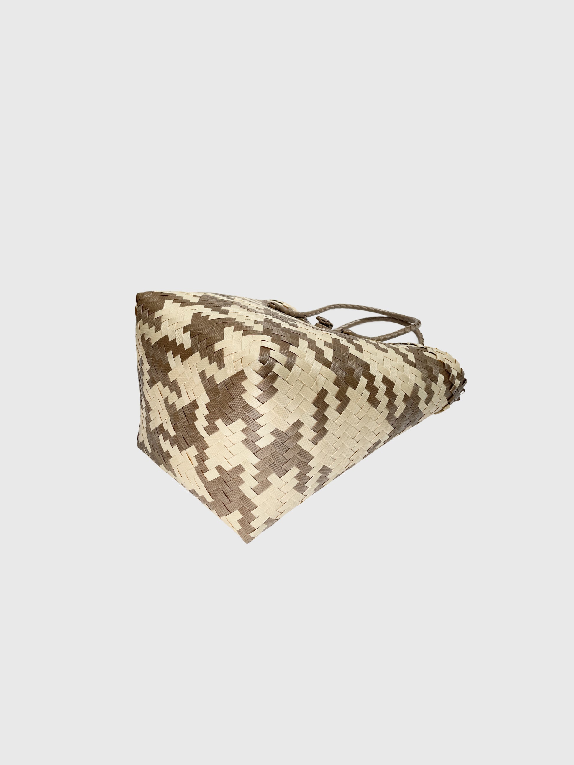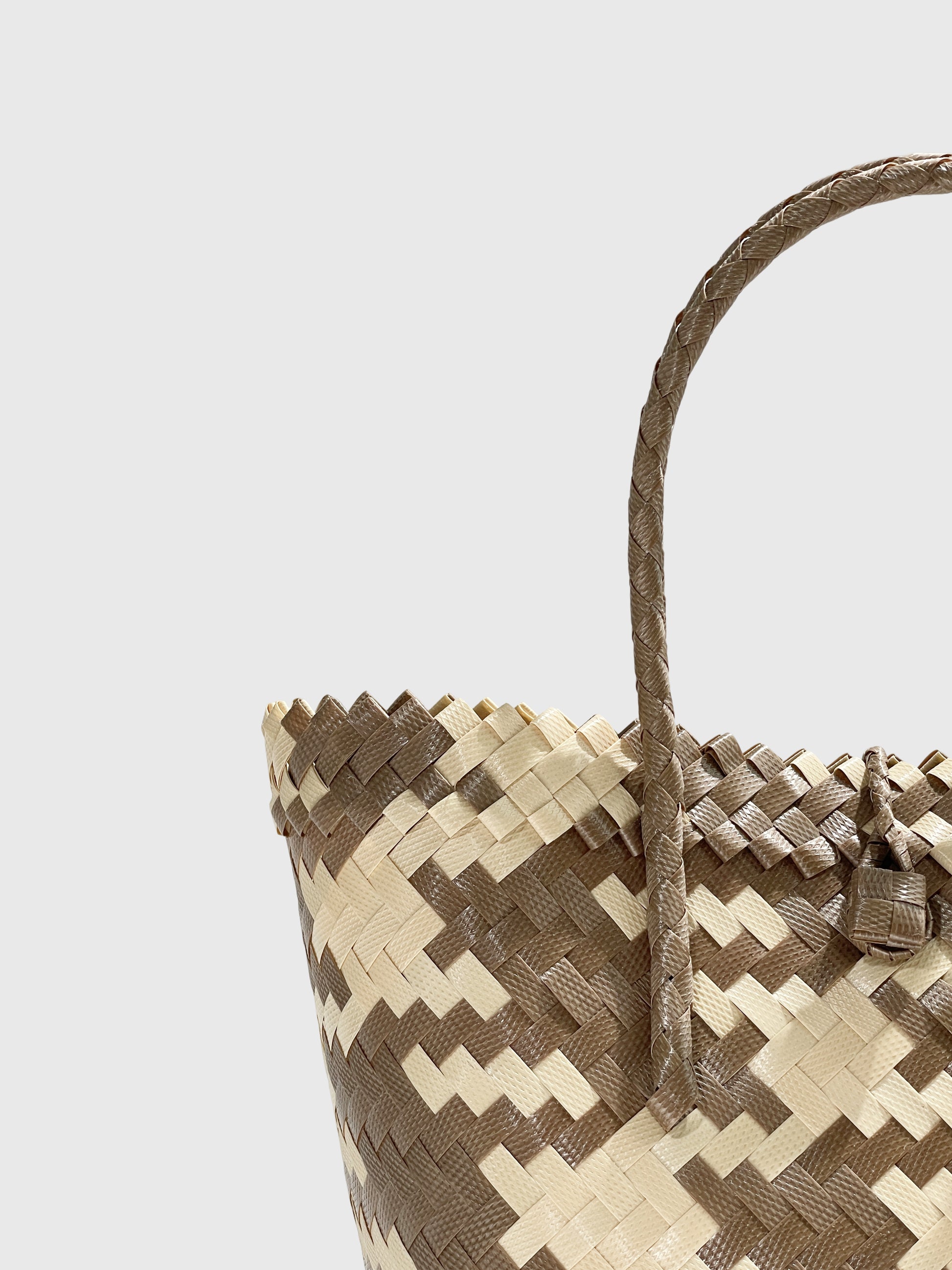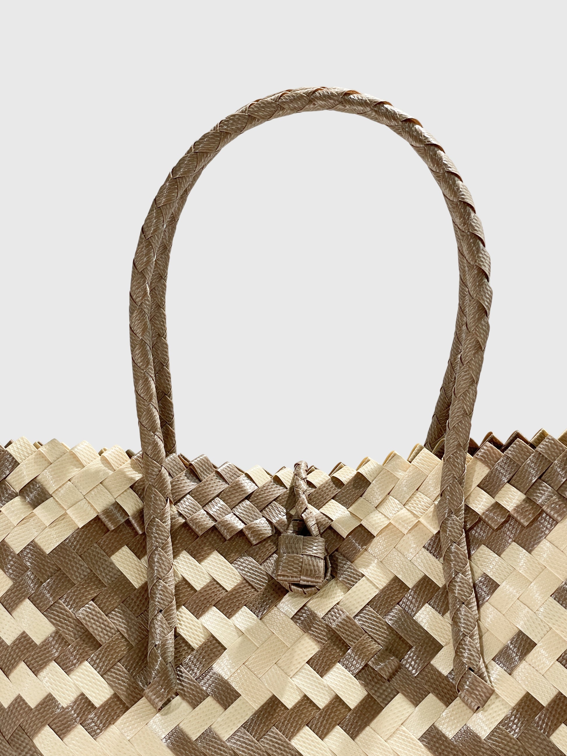 インドネシアの女性の職人さんが一つひとつ丁寧に編み上げた、ハンドメイドのバッグです。手作業ならではのぬくもりと味わいが魅力で、サイズには若干の個体差がございます。