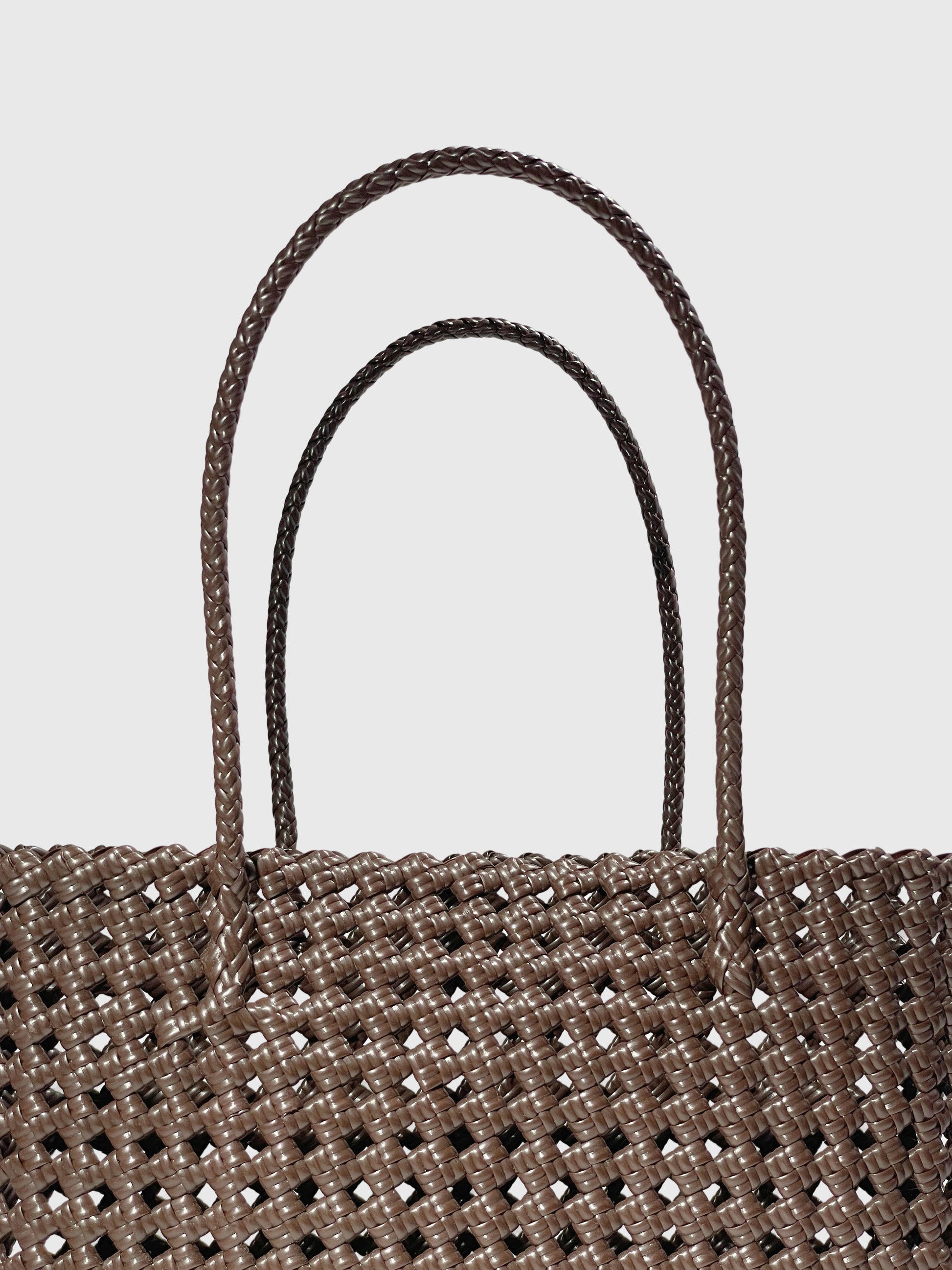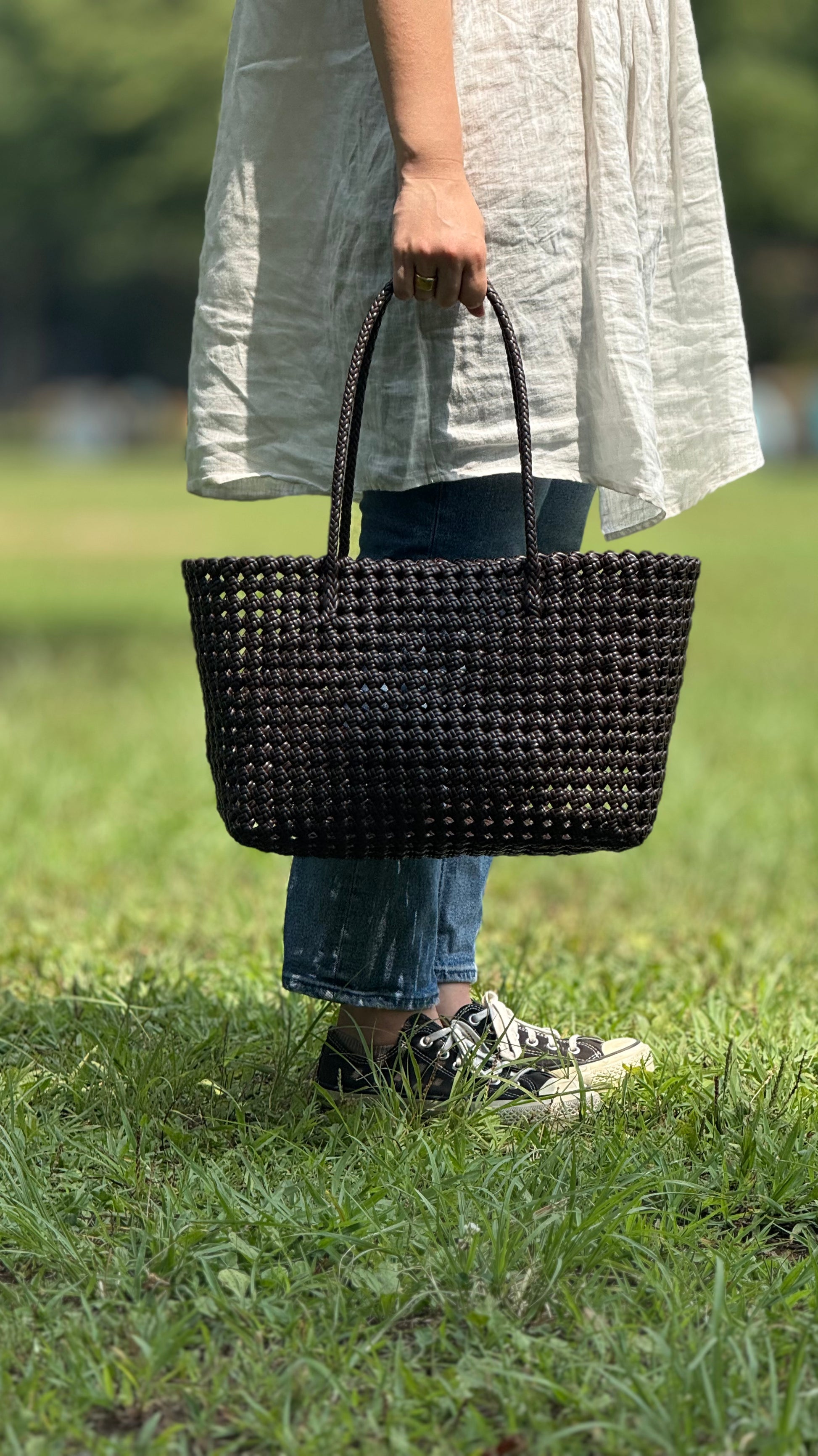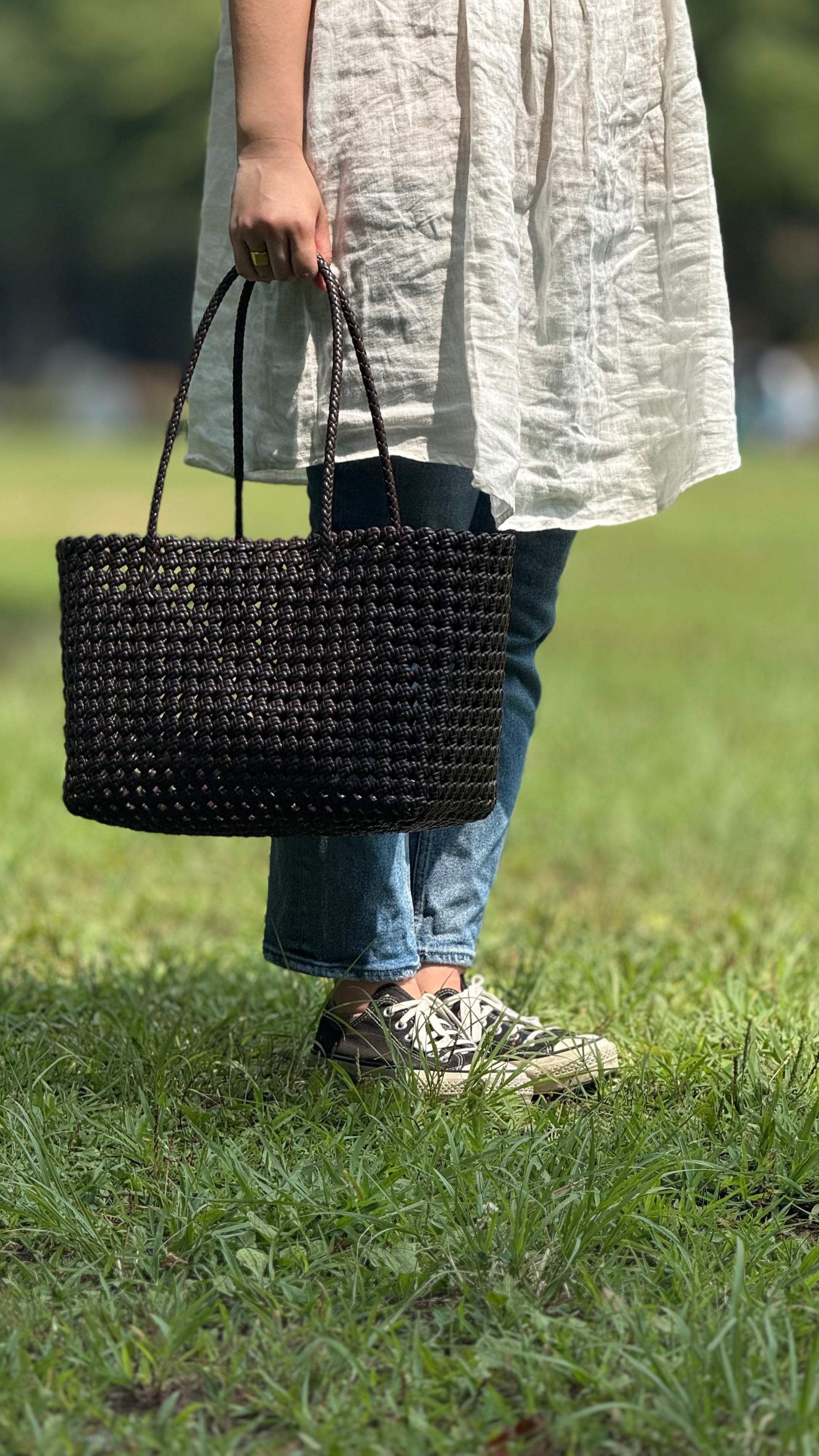 インドネシアの女性の職人さんが一つひとつ丁寧に編み上げた、ハンドメイドのバッグです。手作業ならではのぬくもりと味わいが魅力で、サイズには若干の個体差がございます。