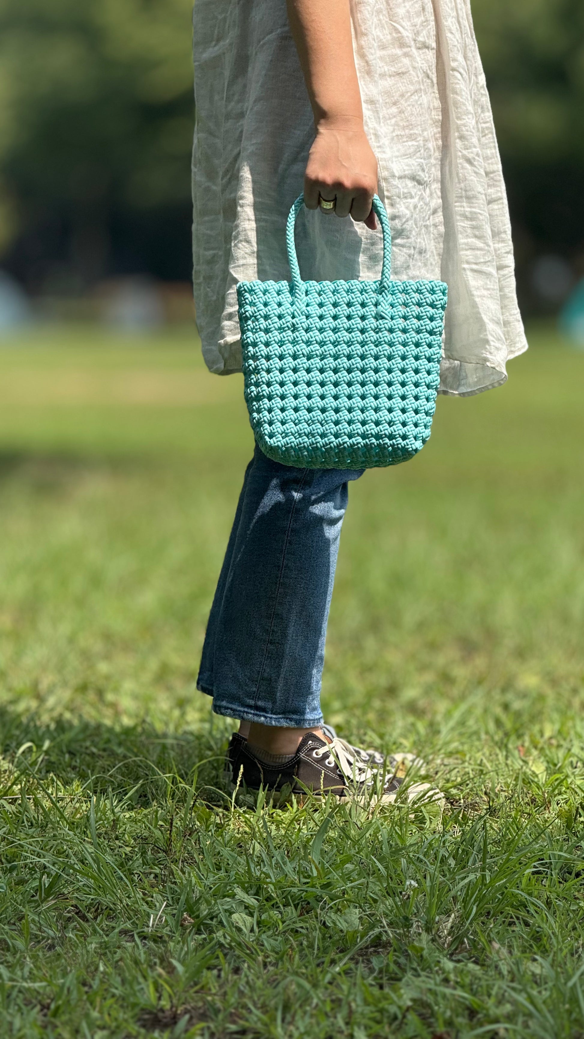 💚 カラフルでやさしい表情の手編みバッグ 💚