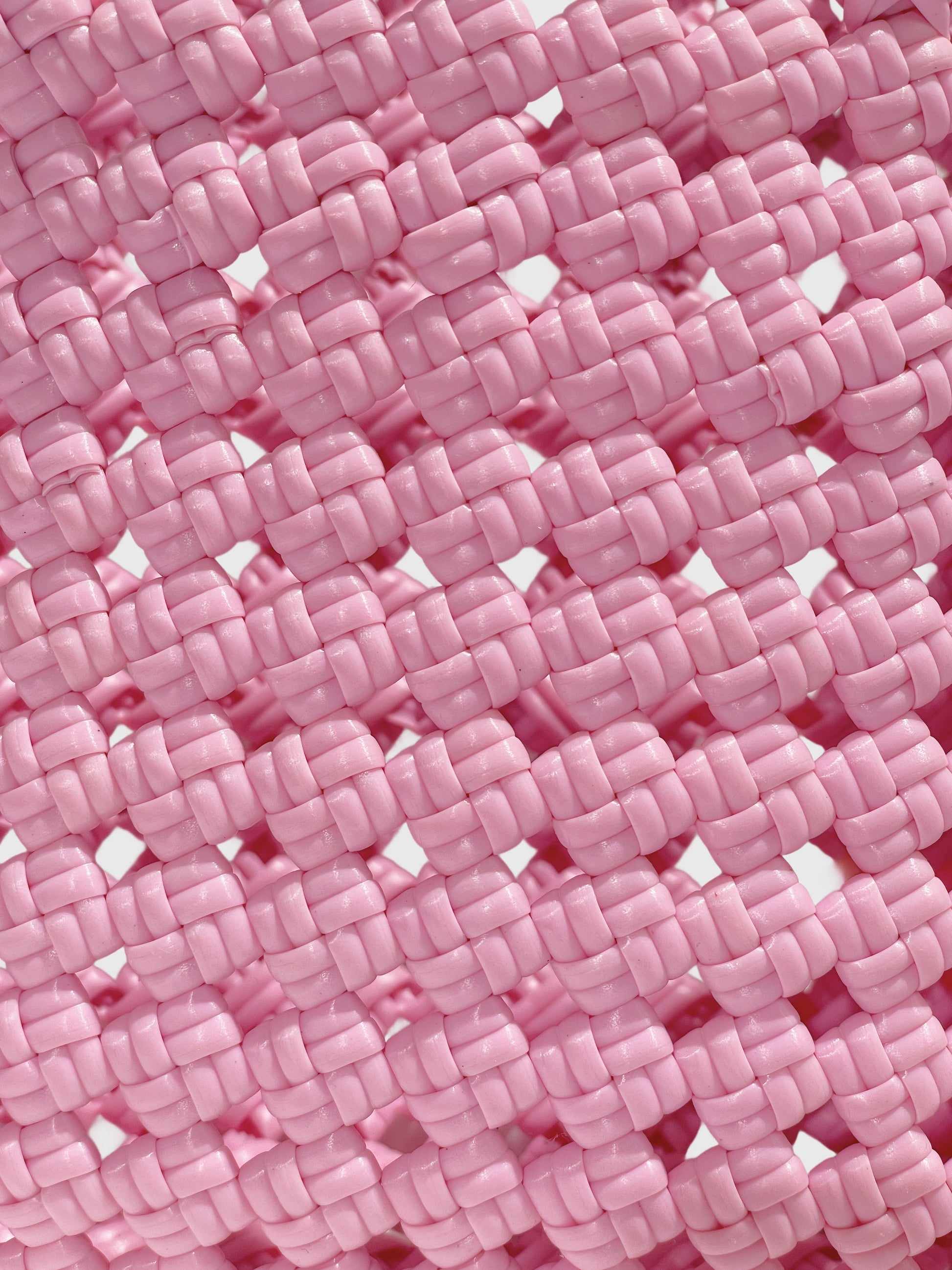 ふんわりとしたピンクが愛らしく、やさしい雰囲気をまとったカラー。甘すぎず、大人の女性にも似合う落ち着いたトーンが魅力です。春夏の装いにぴったりで、コーディネートのワンポイントとして取り入れやすい色合いです。