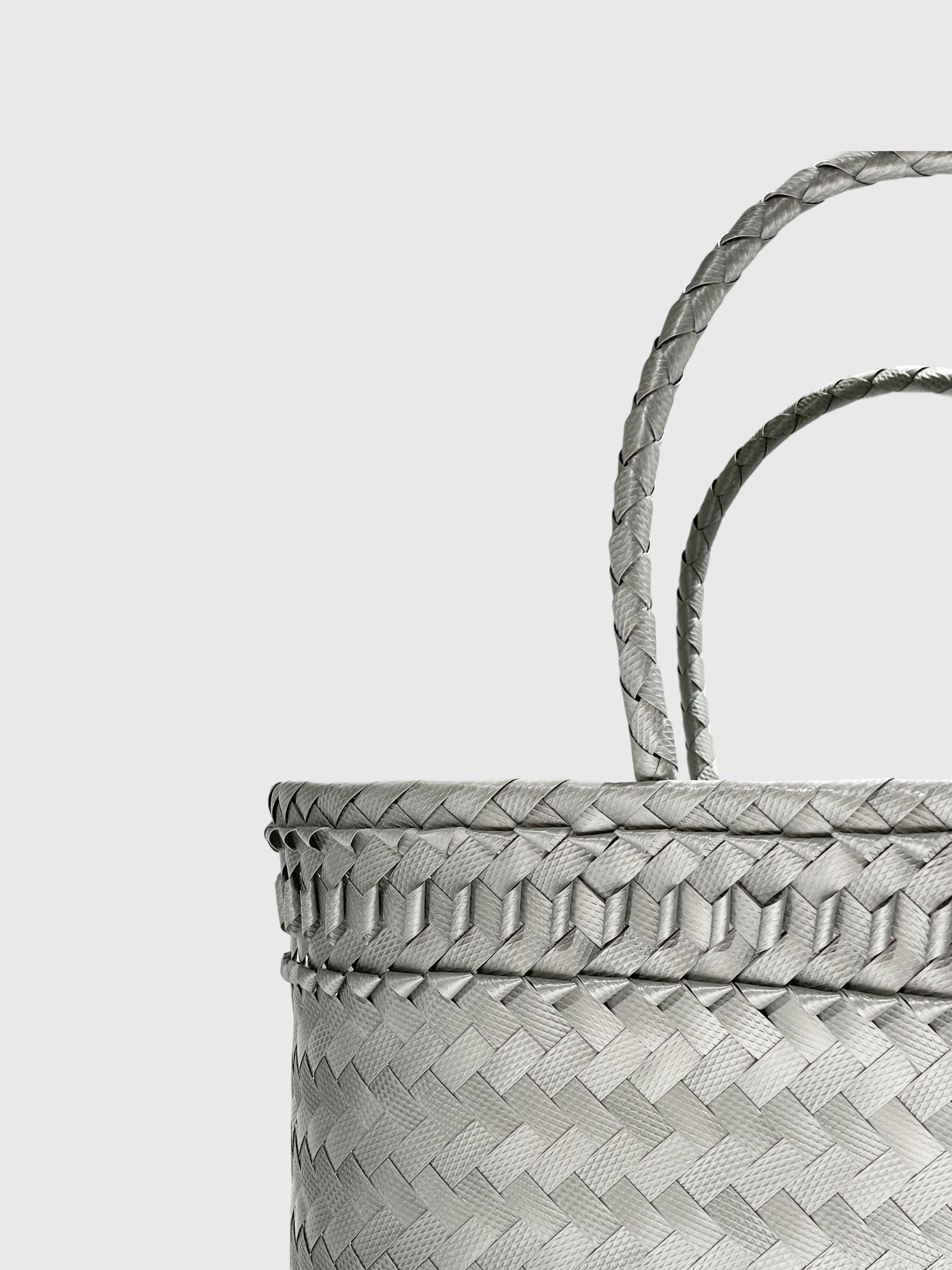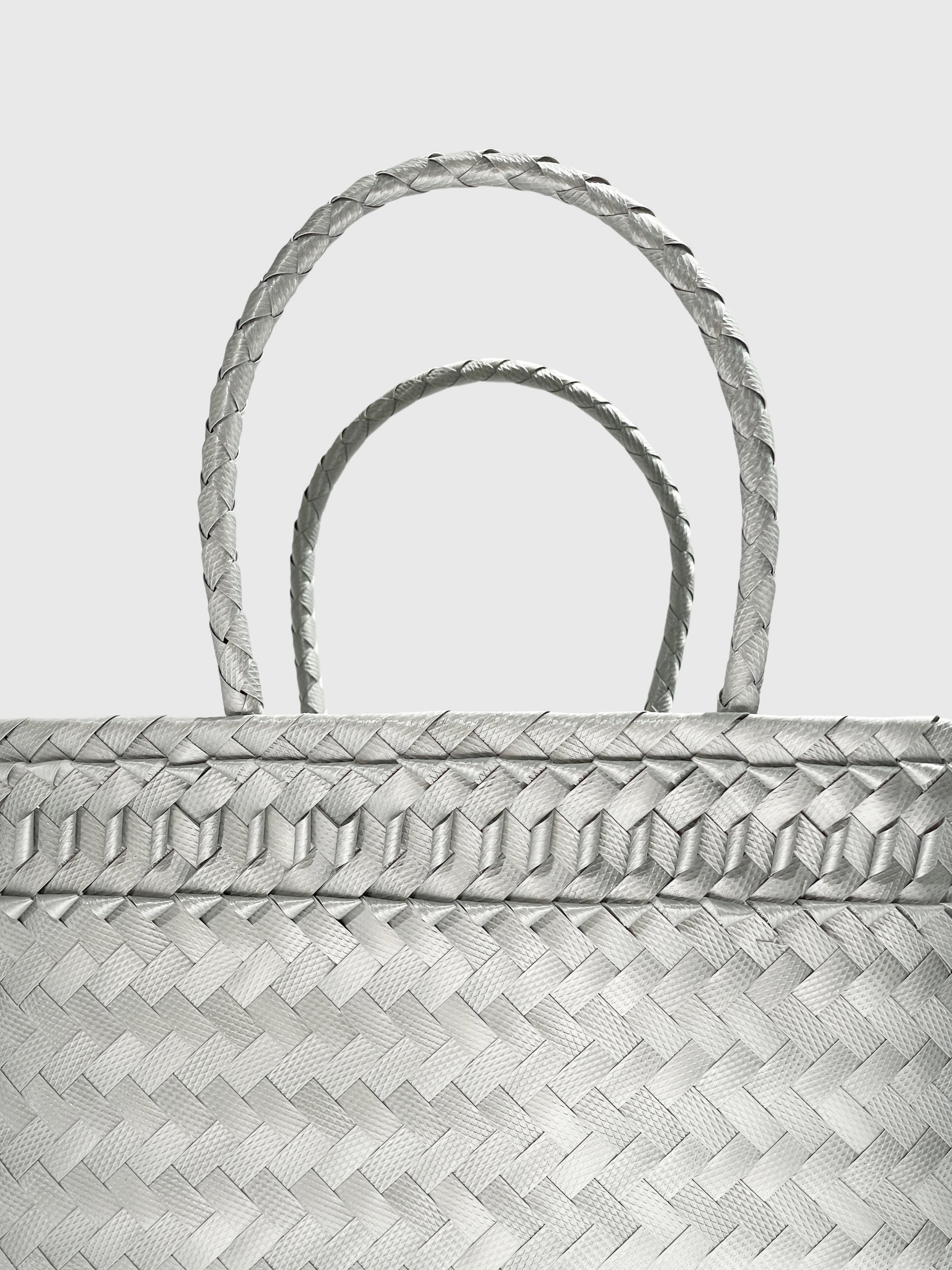 インドネシアの女性の職人さんが一つひとつ丁寧に編み上げた、ハンドメイドのバッグです。手作業ならではのぬくもりと味わいが魅力で、サイズには若干の個体差がございます。