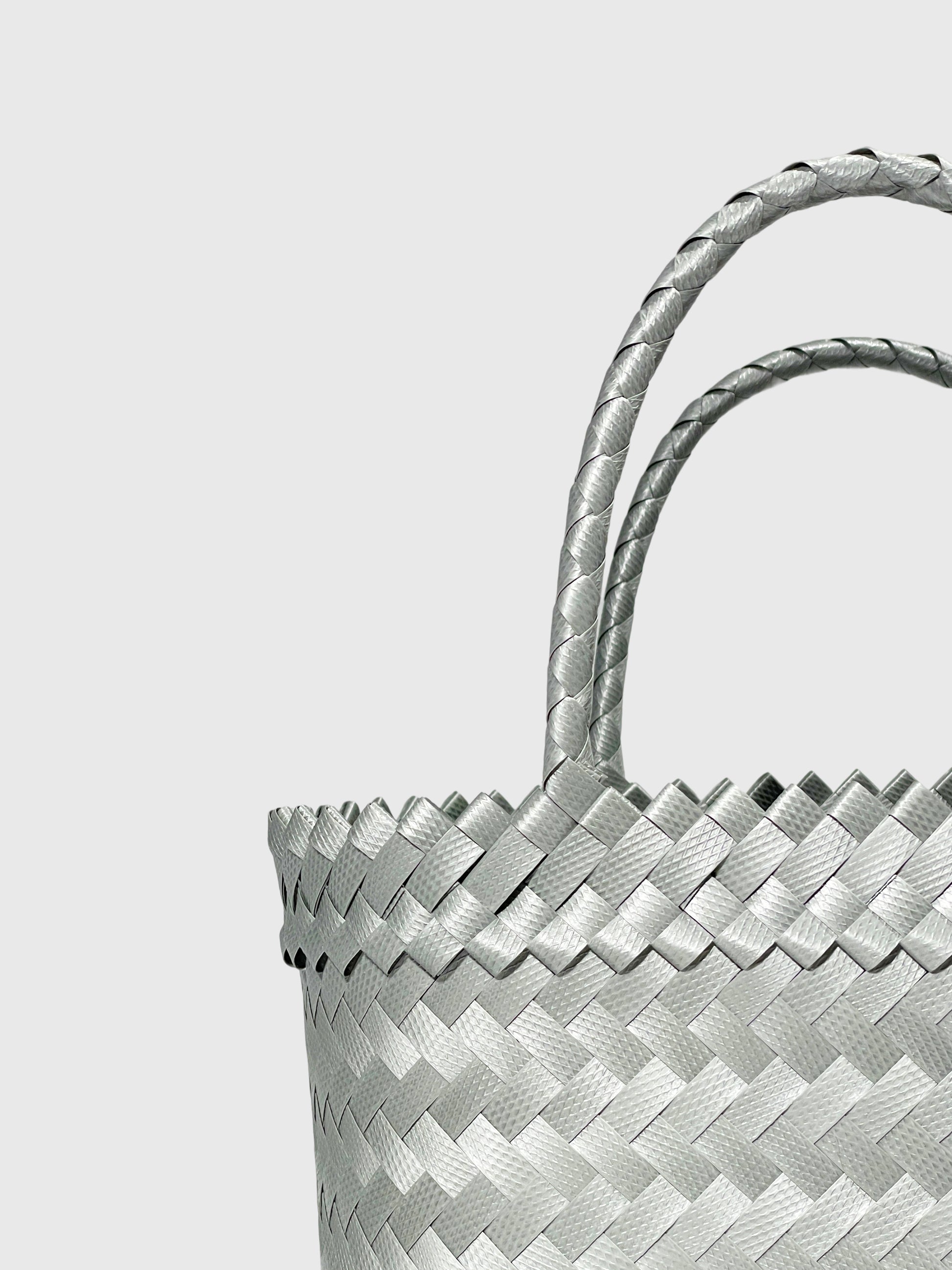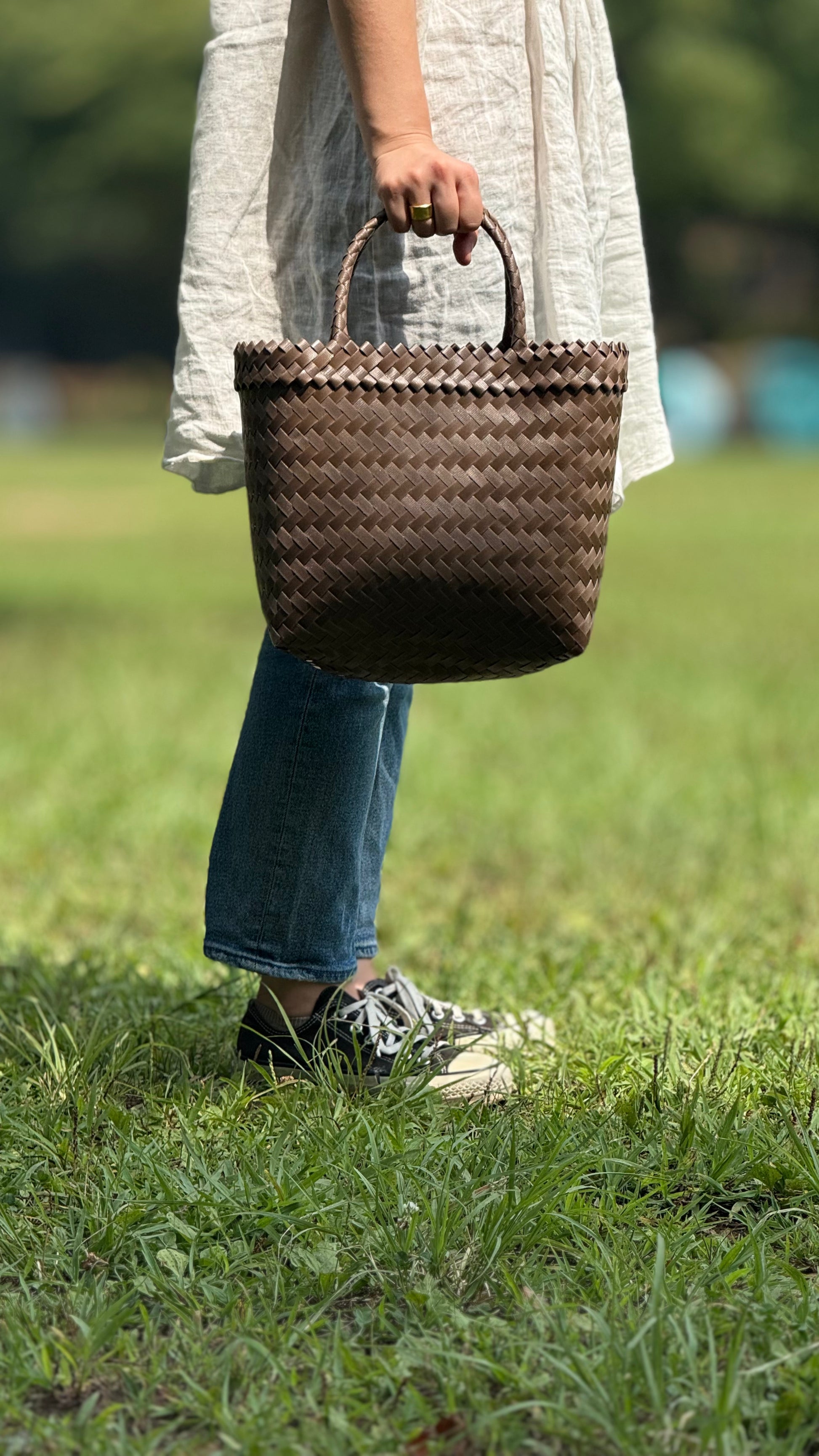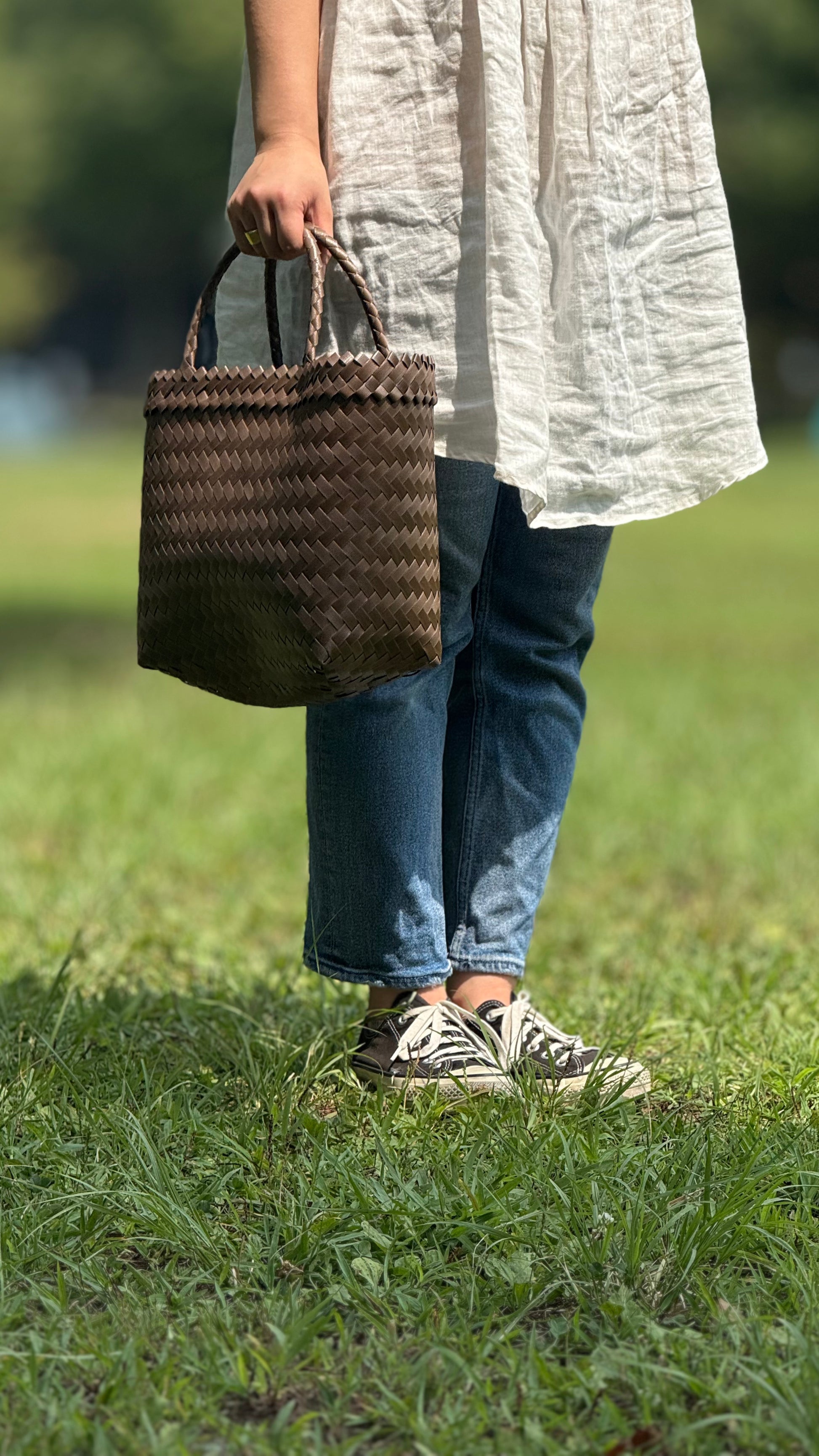 インドネシアの女性の職人さんが一つひとつ丁寧に編み上げた、ハンドメイドのバッグです。手作業ならではのぬくもりと味わいが魅力で、サイズには若干の個体差がございます。