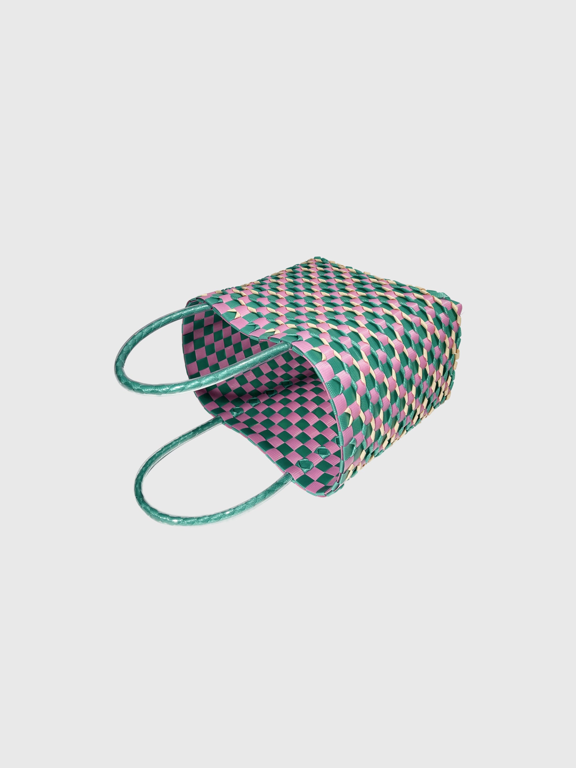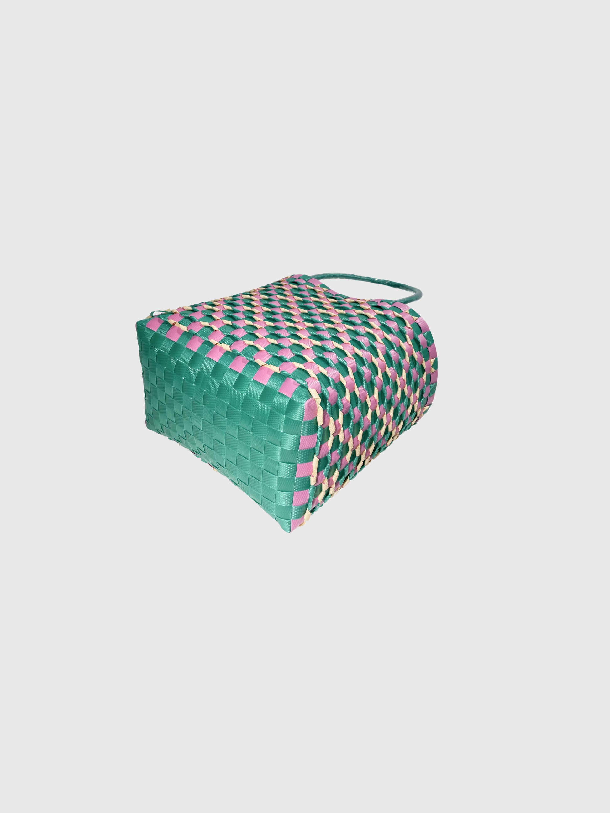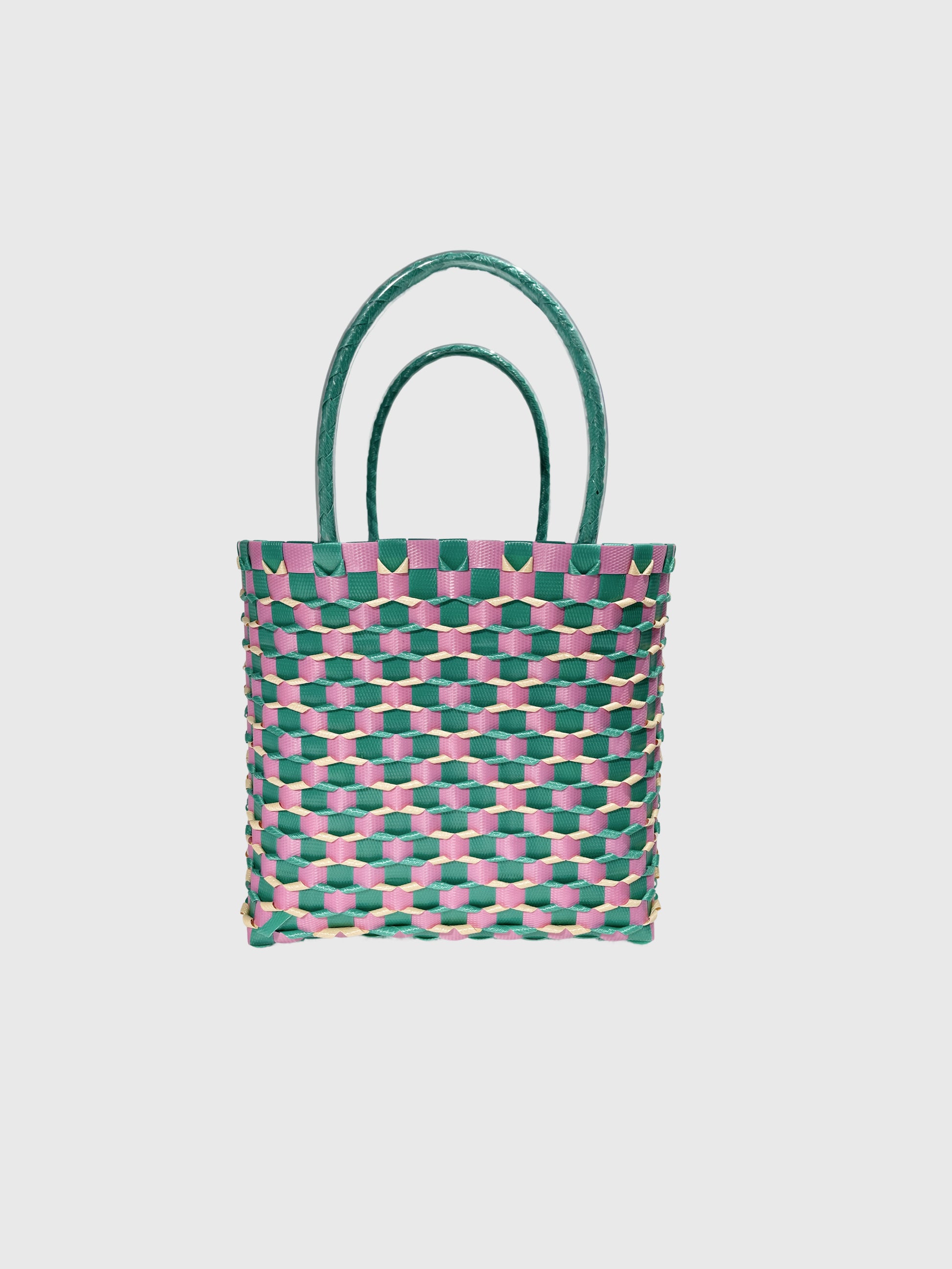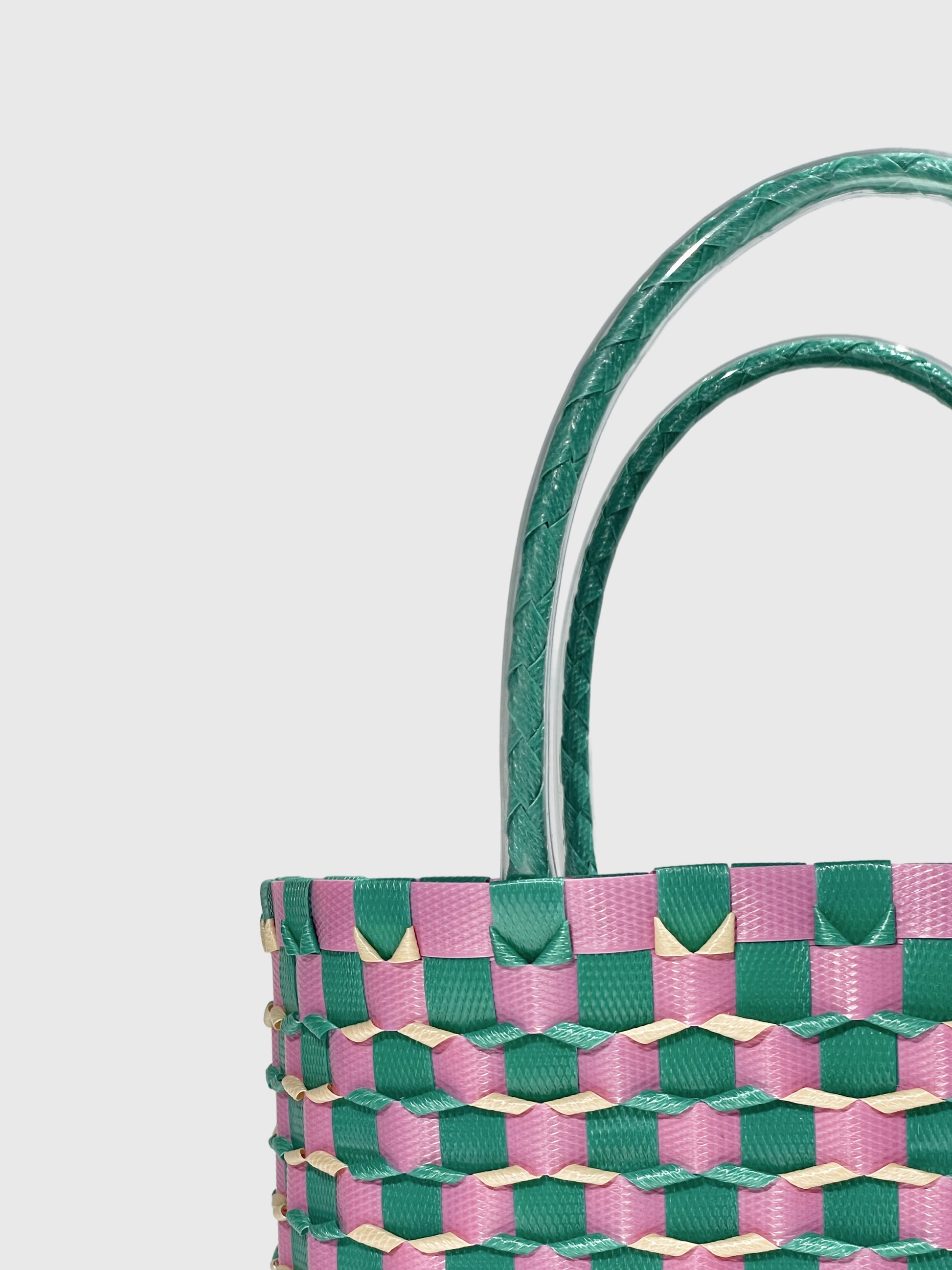 グリーンとピンクをベースに、やさしいベージュを合わせた華やかな配色。鮮やかさと可愛らしさを兼ね備え、持つだけで気分が明るくなるデザインです。カジュアルな装いにはもちろん、シンプルなコーディネートのアクセントにもぴったり。