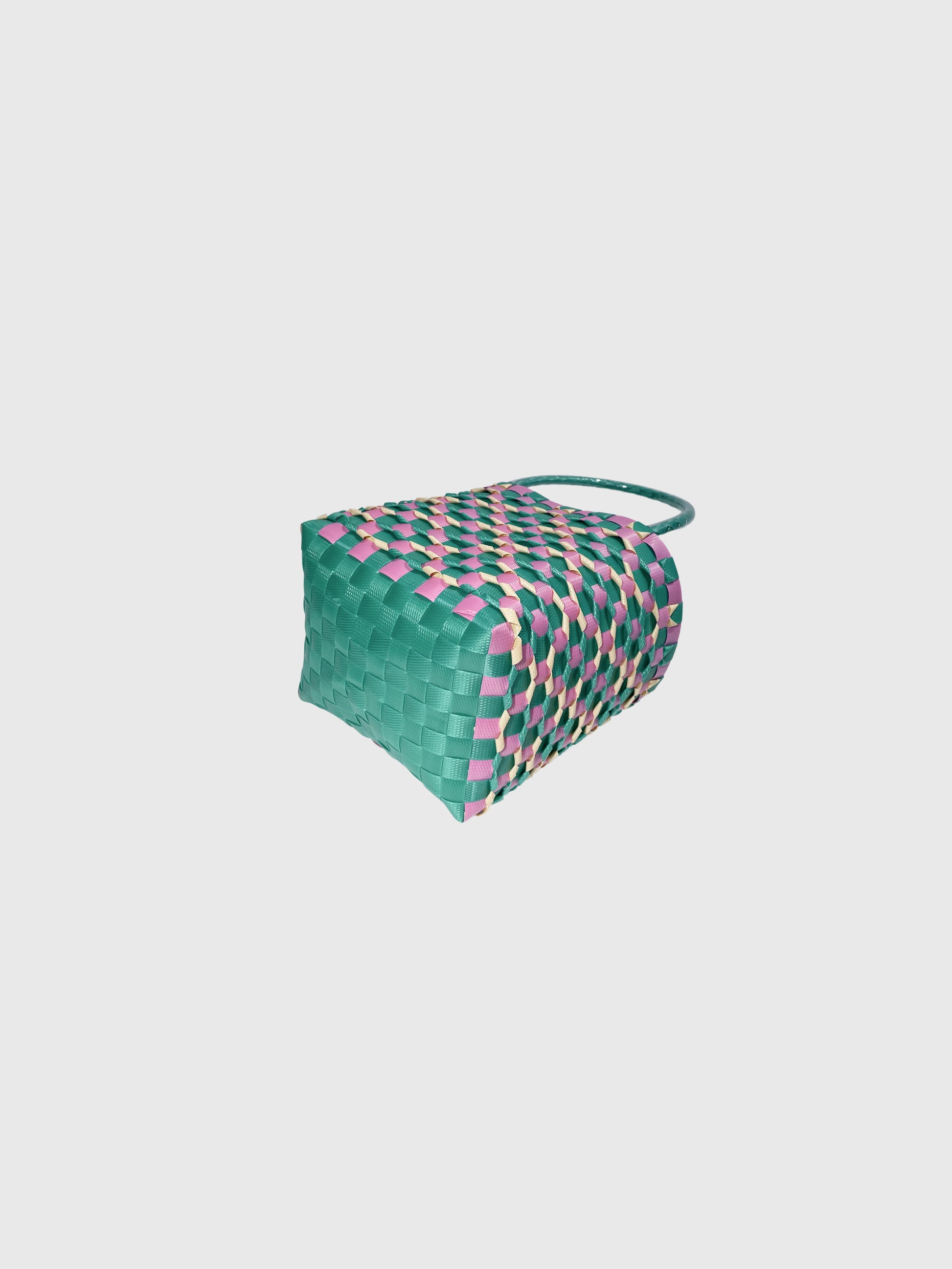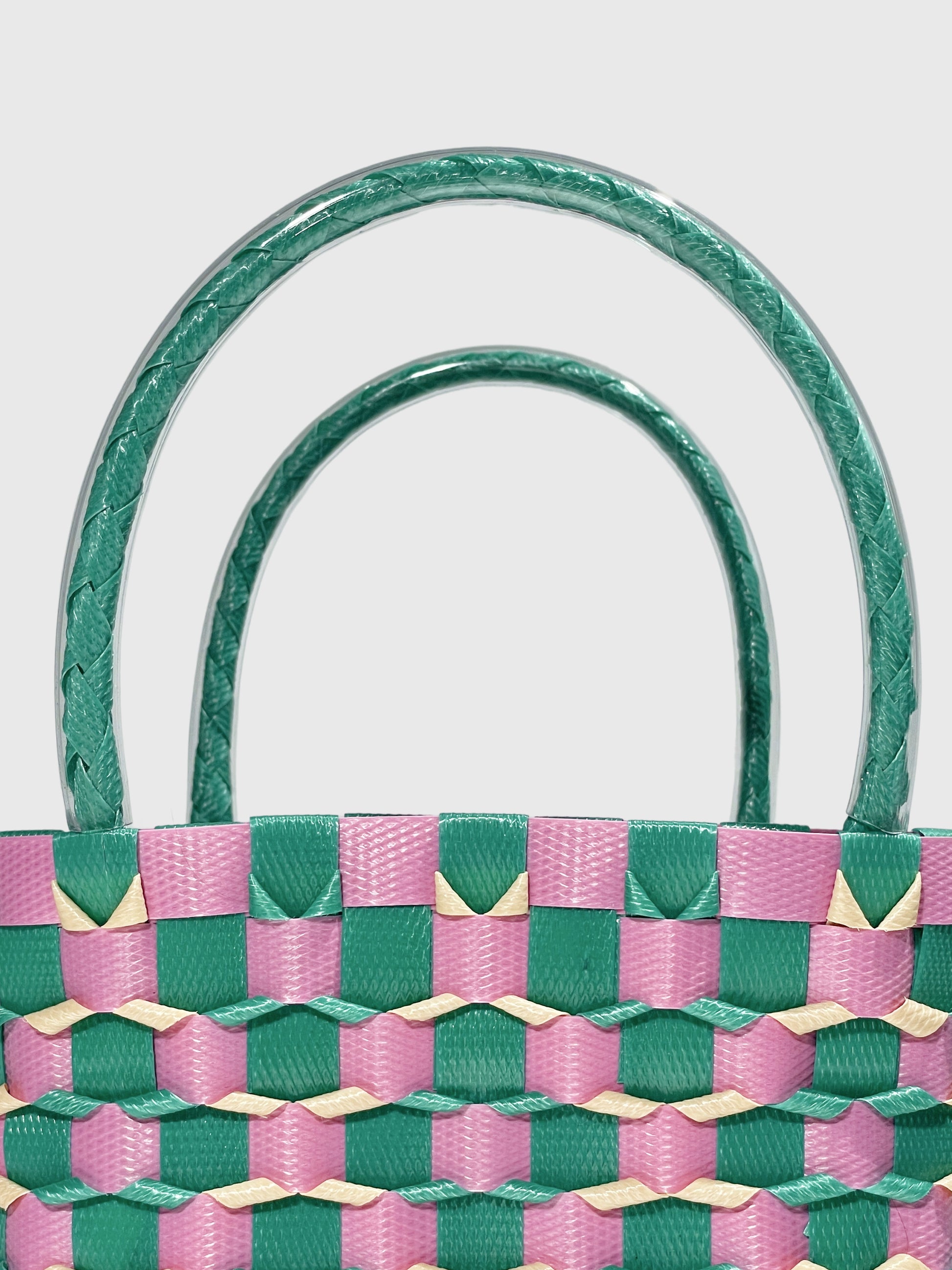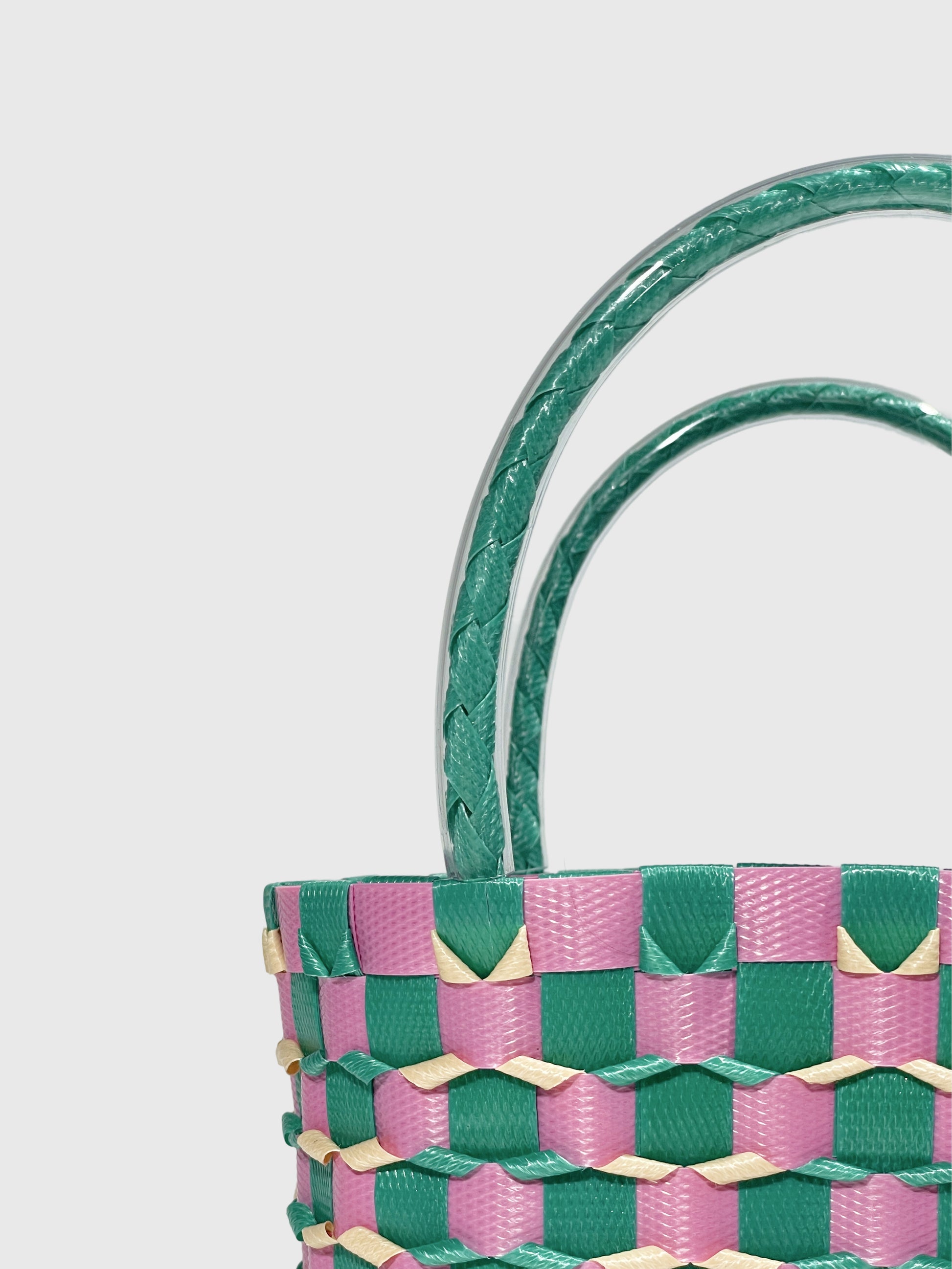 グリーン ピンク エンボス ミニ ハンドバッグ