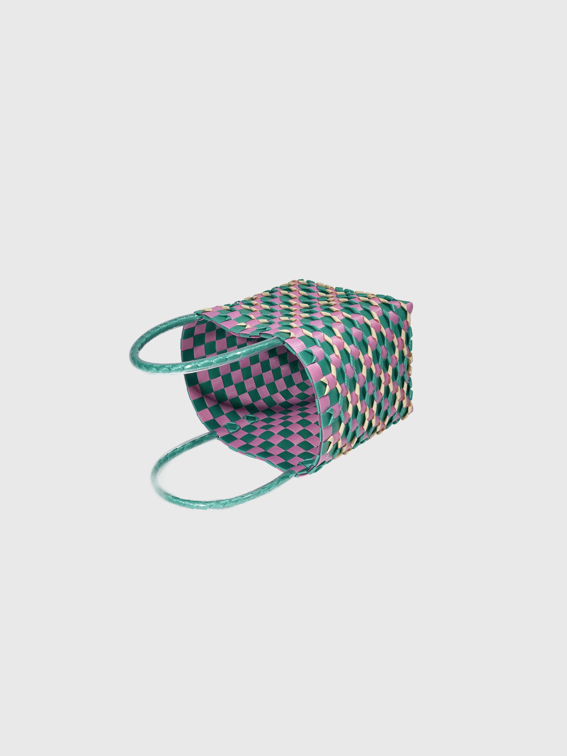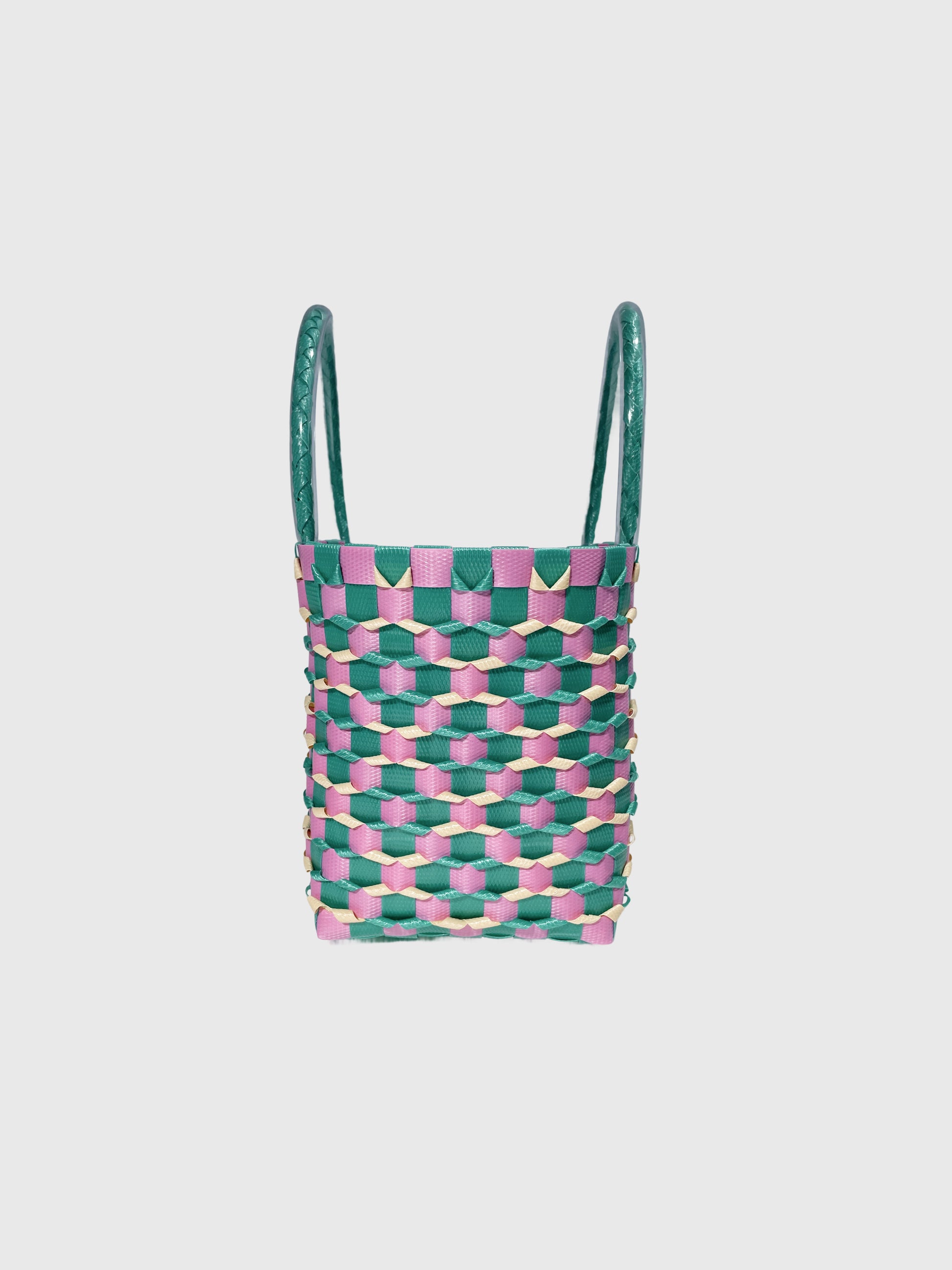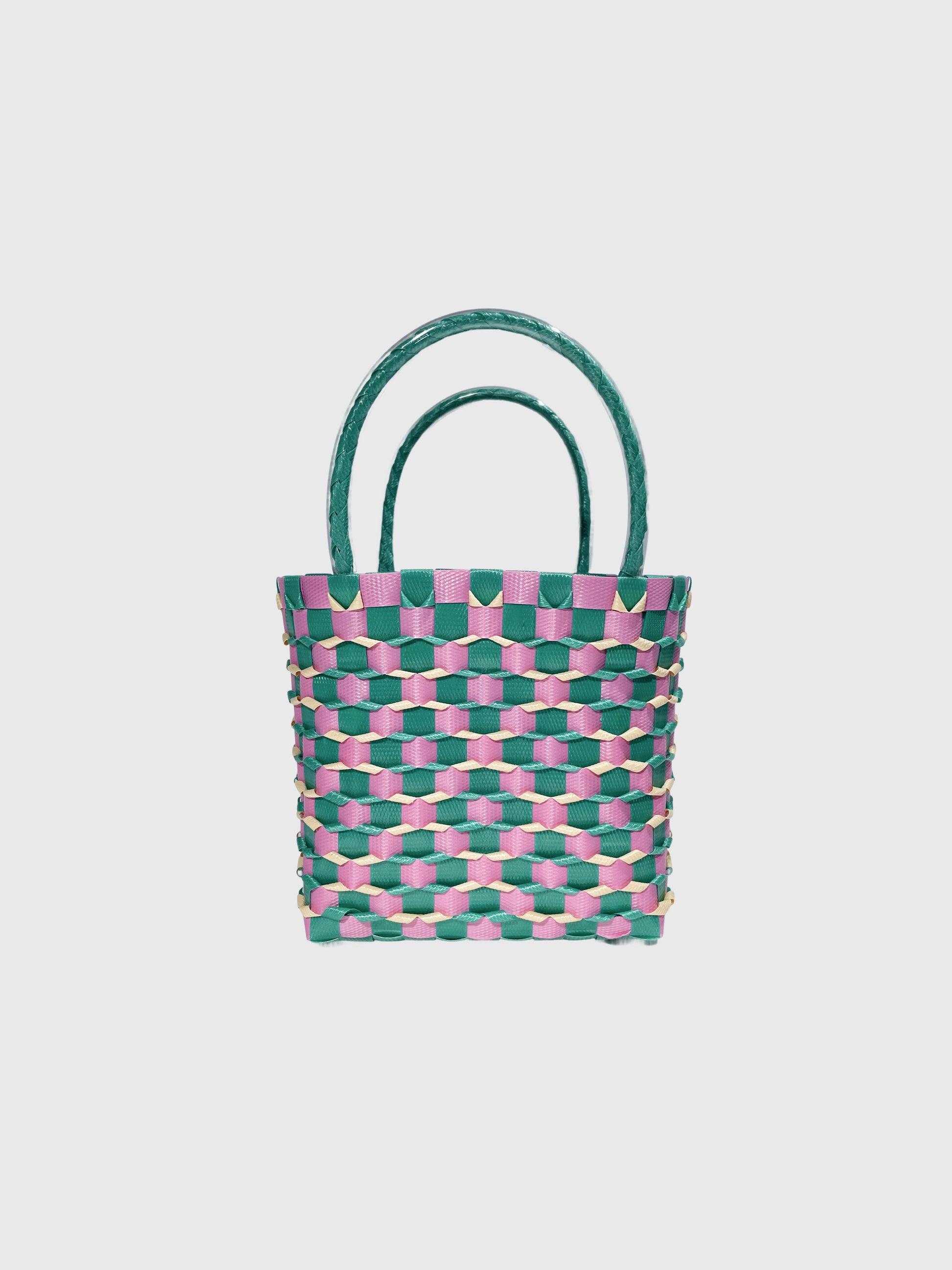 グリーン ピンク エンボス ミニ ハンドバッグ