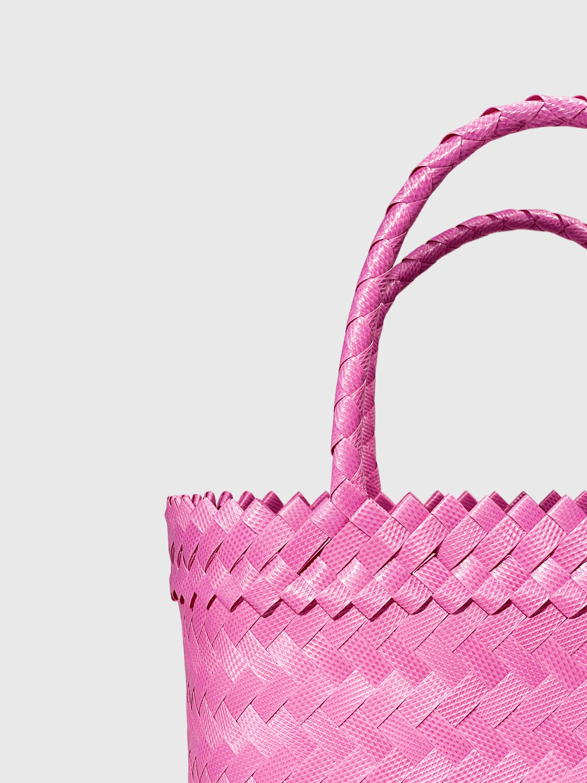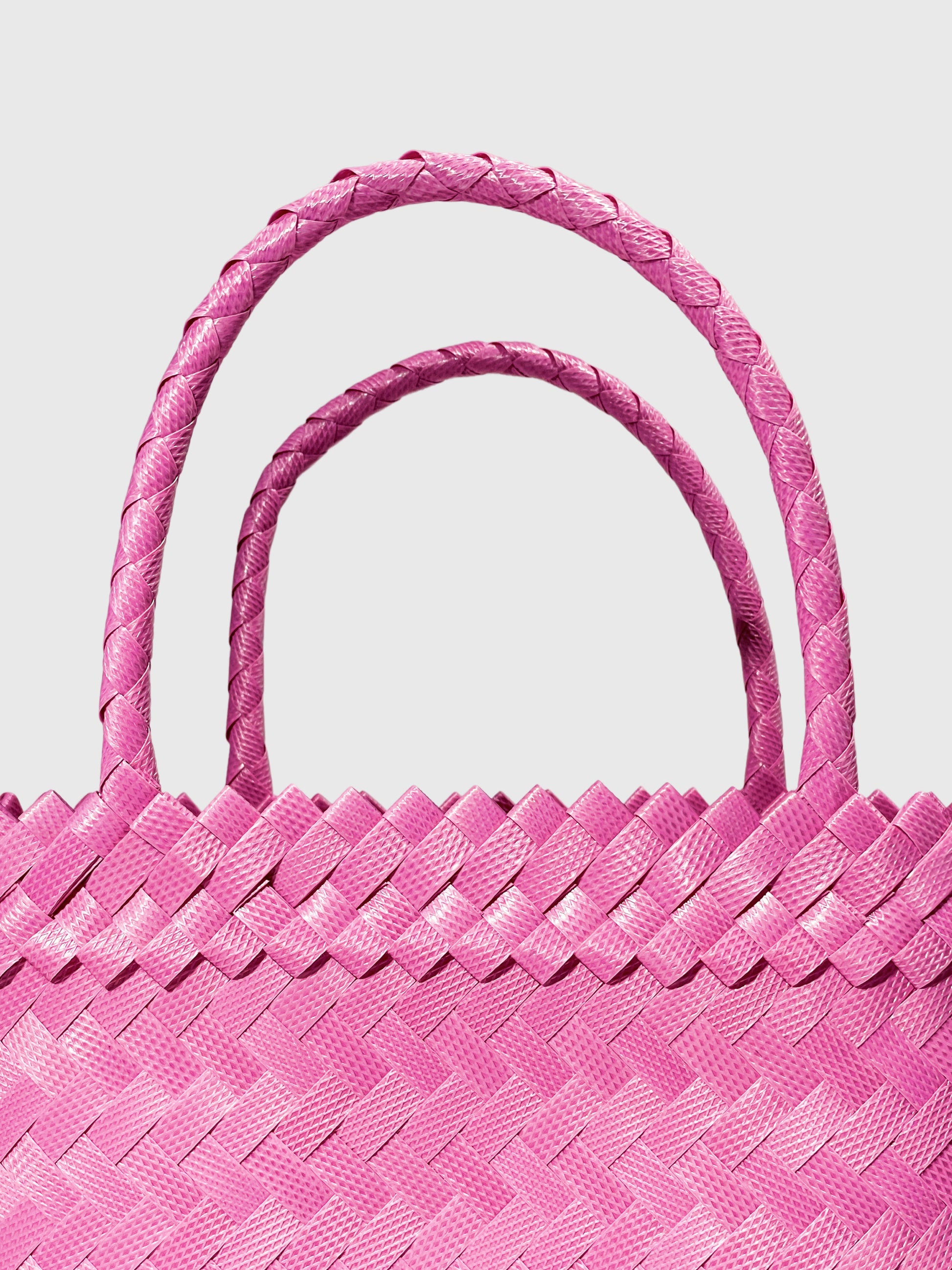 インドネシアの女性の職人さんが一つひとつ丁寧に編み上げた、ハンドメイドのバッグです。手作業ならではのぬくもりと味わいが魅力で、サイズには若干の個体差がございます。