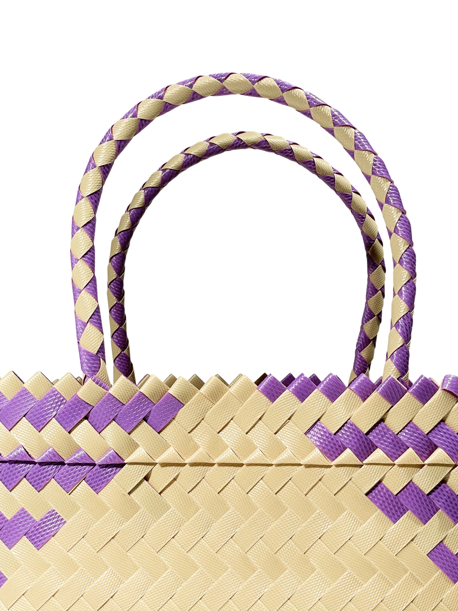 インドネシアの女性の職人さんが一つひとつ丁寧に編み上げた、ハンドメイドのバッグです。手作業ならではのぬくもりと味わいが魅力で、サイズには若干の個体差がございます。