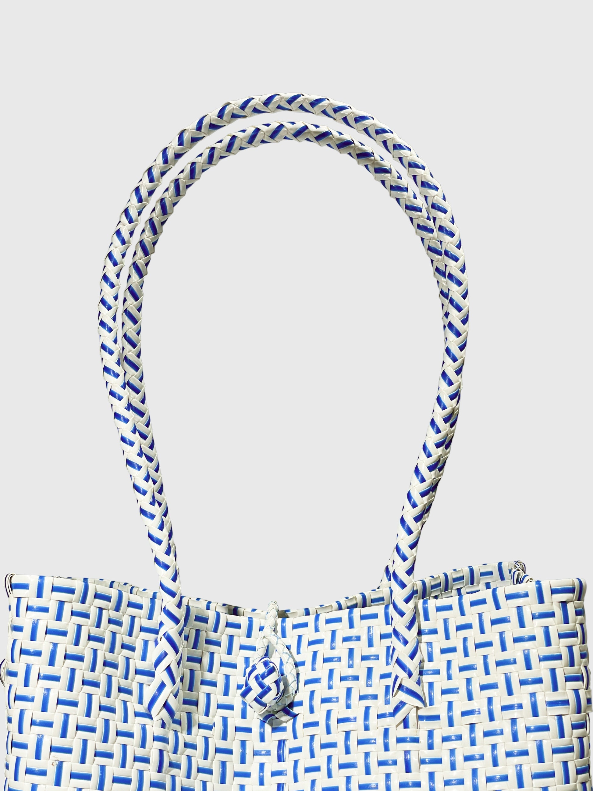 清涼感のあるホワイトに、爽やかなブルーを組み合わせたデザイン。まるで青空のように軽やかで、どんなコーディネートにも合わせやすい万能カラーです。持つだけで明るくすっきりとした印象を演出してくれます。