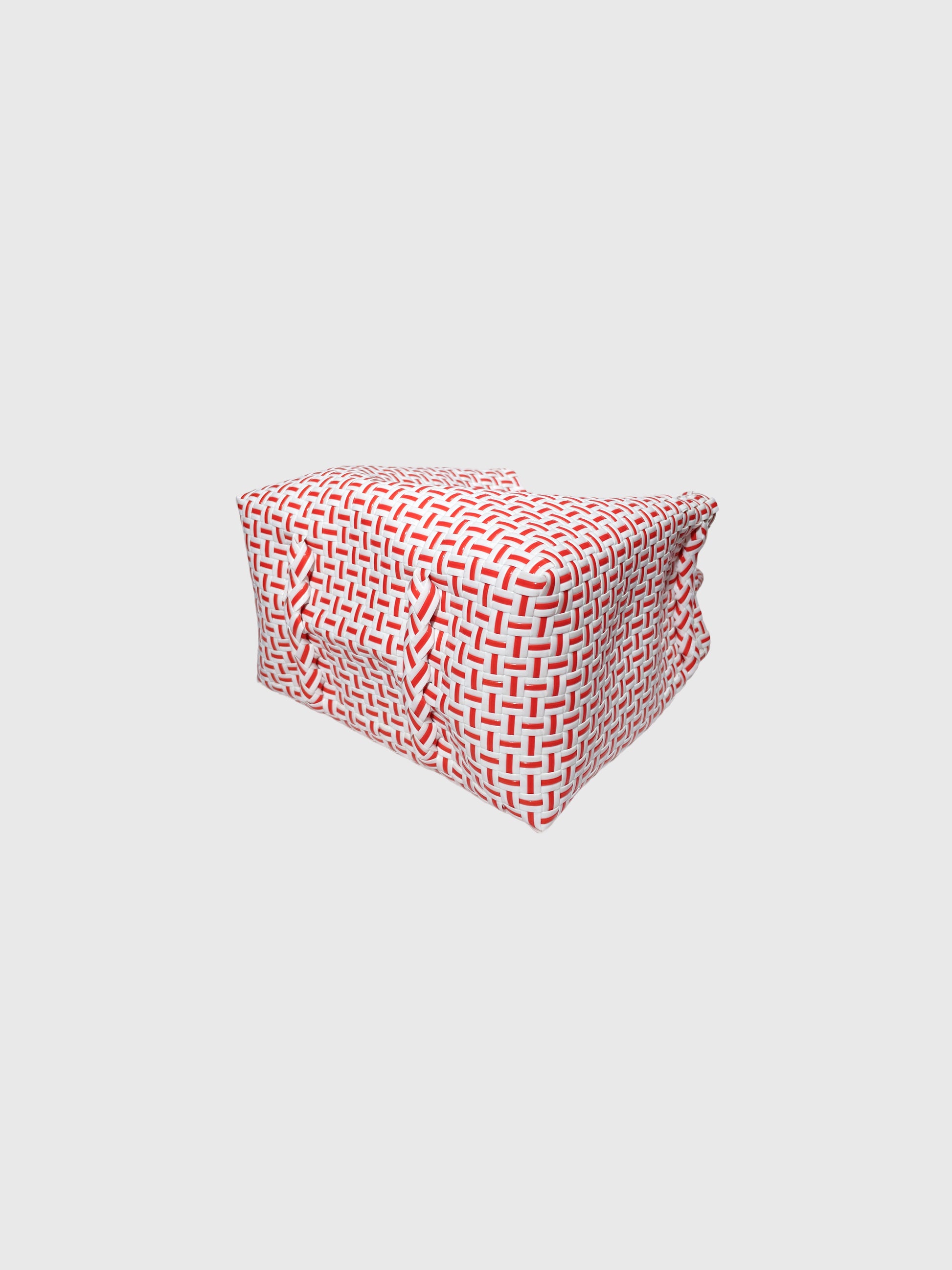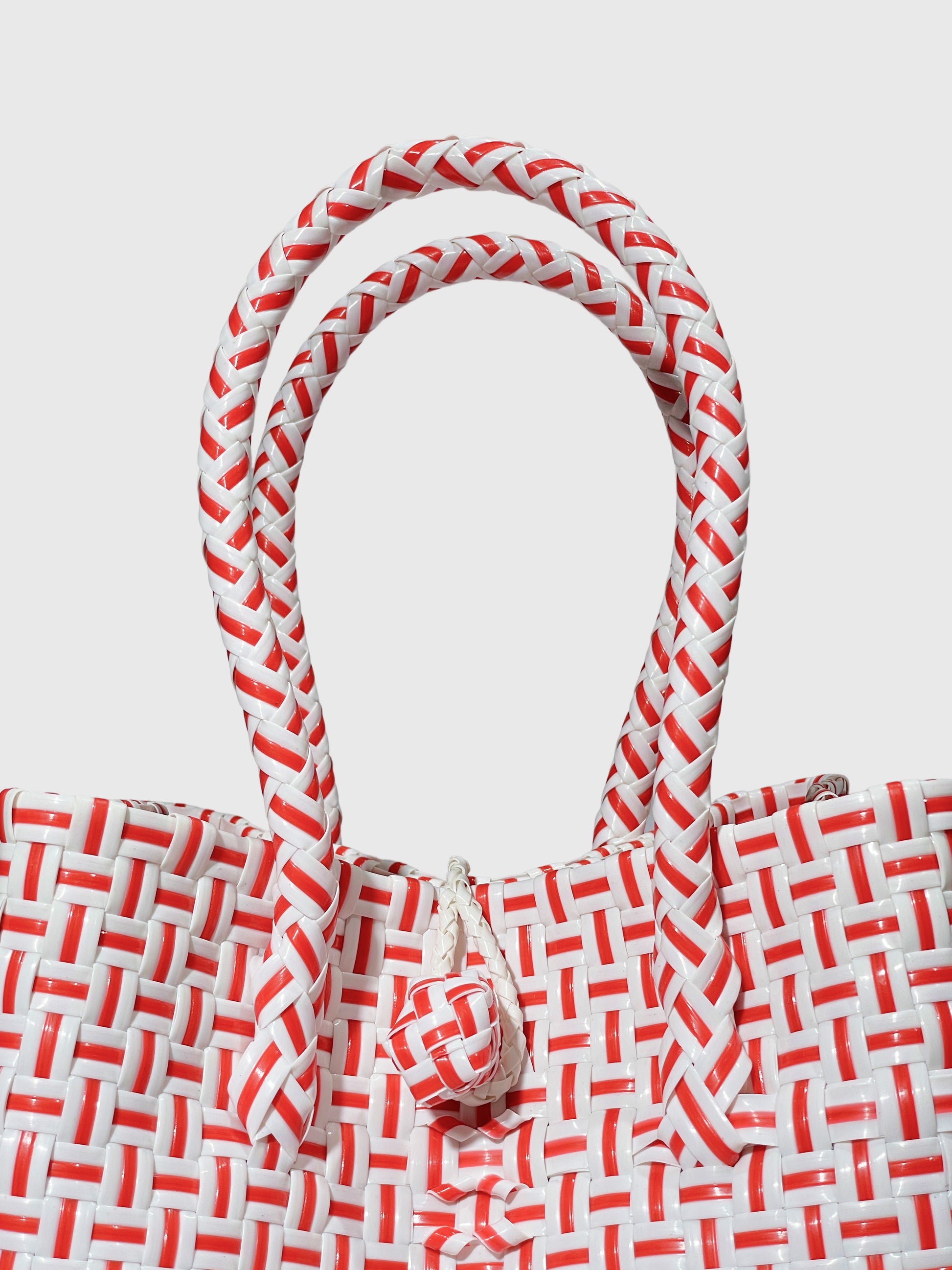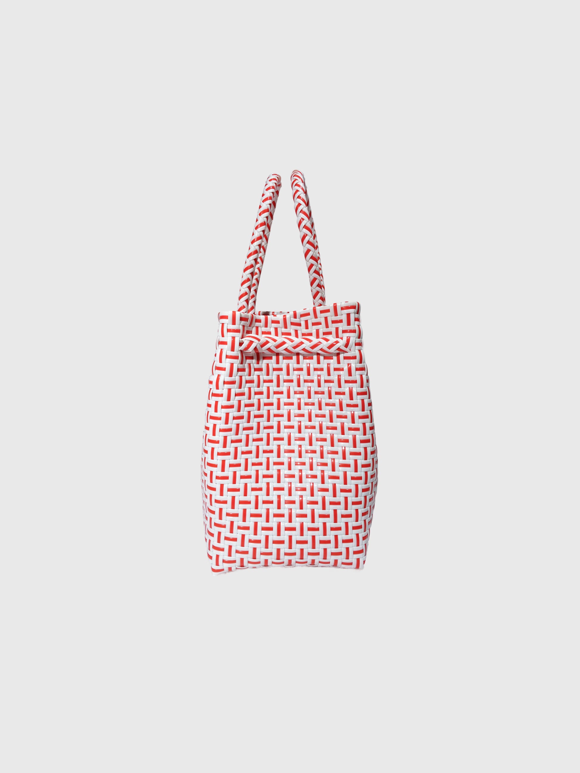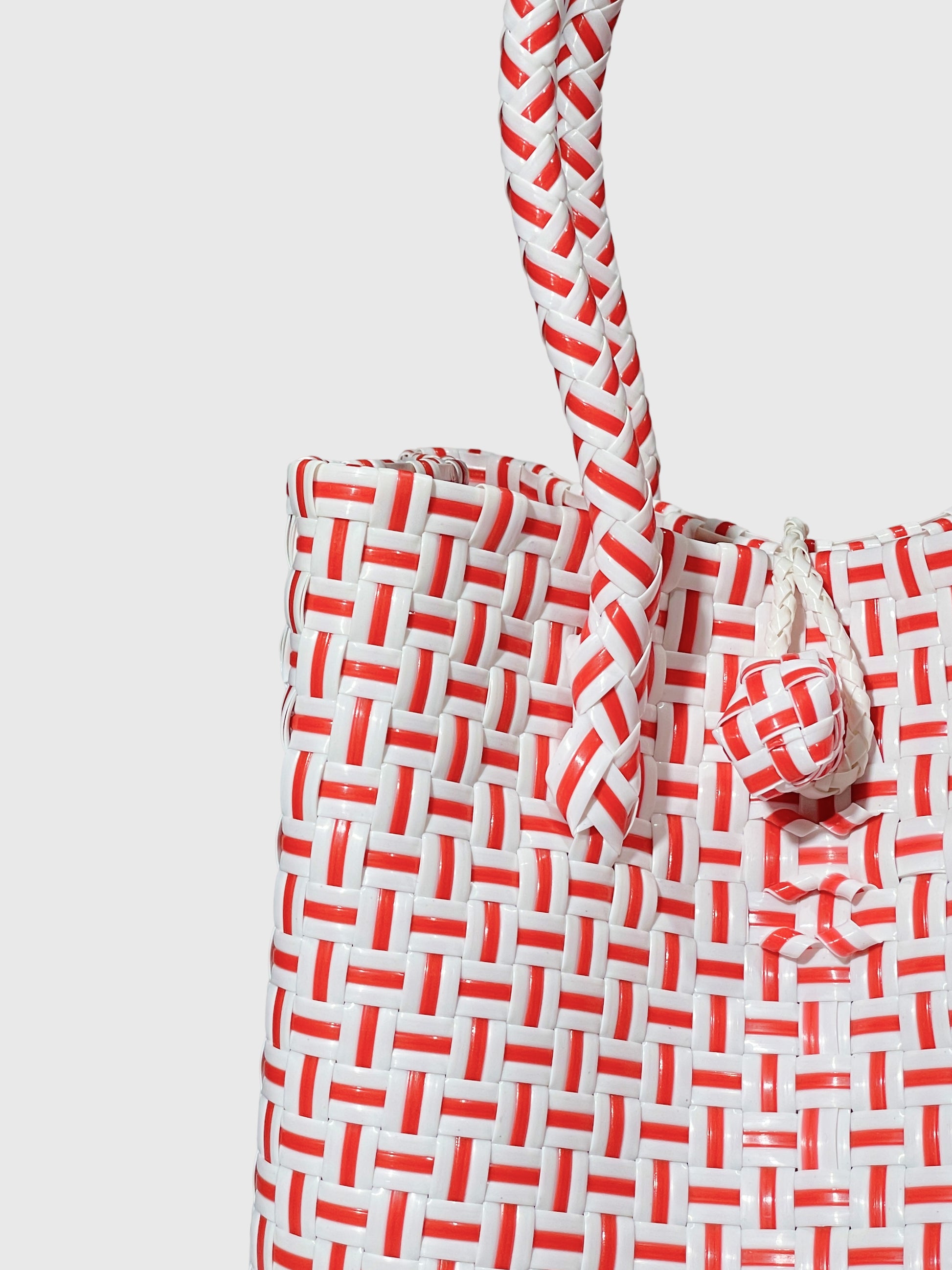 清潔感のあるホワイトに、鮮やかなレッドを組み合わせた華やかなデザイン。シンプルながらも存在感があり、持つだけでコーディネートに元気と明るさをプラスしてくれます。